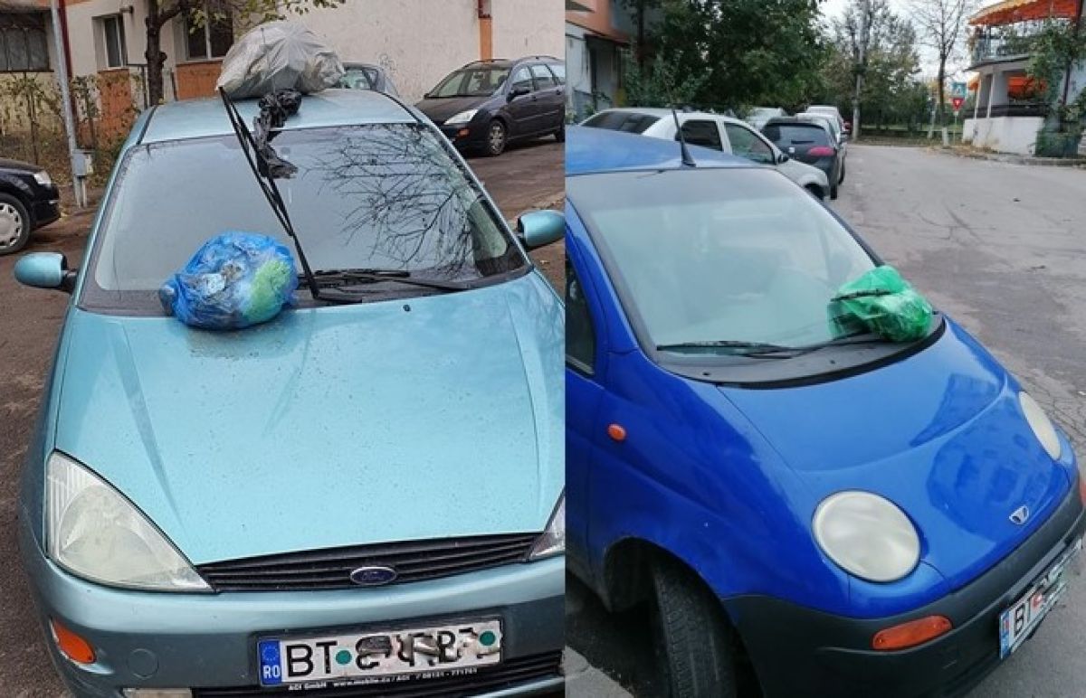 Se pare că ambele mașini erau parcate în același cartier din municipiul Botoșani, după cum au precizat autorii fotografiilor.