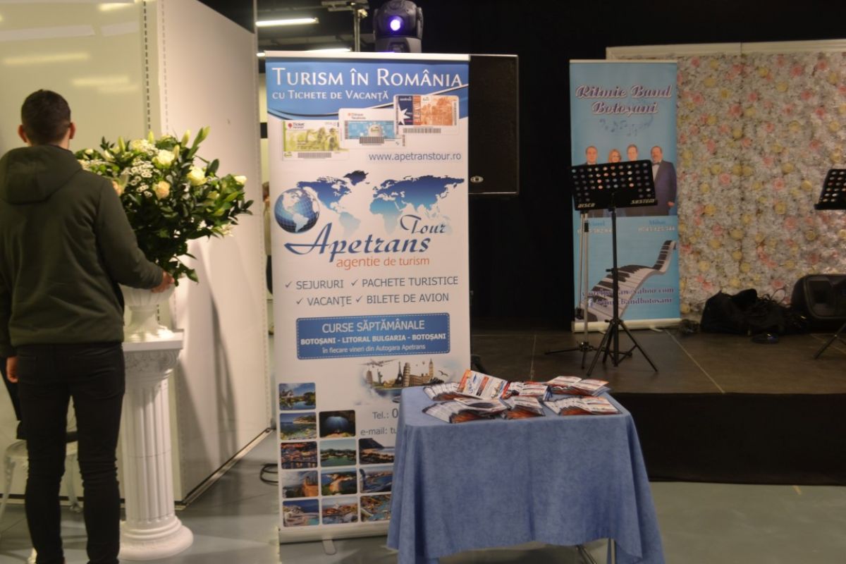 Viitorii miri sunt așteptați aici pentru a–și organiza nunta de vis și asta pentru că expozanți din patru județe respectiv Botoșani, Iași, Suceava, Târgu Mureș vin în ajutorul lor. De la rochii de mireasă, verighete, accesorii și până la prăjituri, servicii foto sau aranjamente florale, toate pot fi achiziționate de către viitorii miri în aceste zile. Și s-au pregătit și oferte.