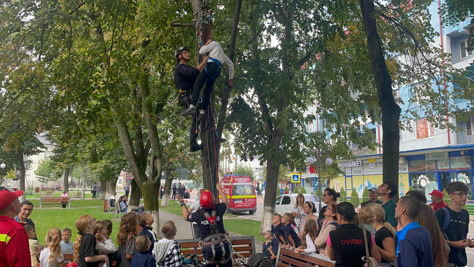 Copiii au fost angrenați în activități interactive care au constat în parcurgerea, contracronometru, a unui traseu cu obstabole, asemănător celui din concursul „Cel mai puternic pompieri”, plimbarea cu șenilata și coborârea pe tiroliană.