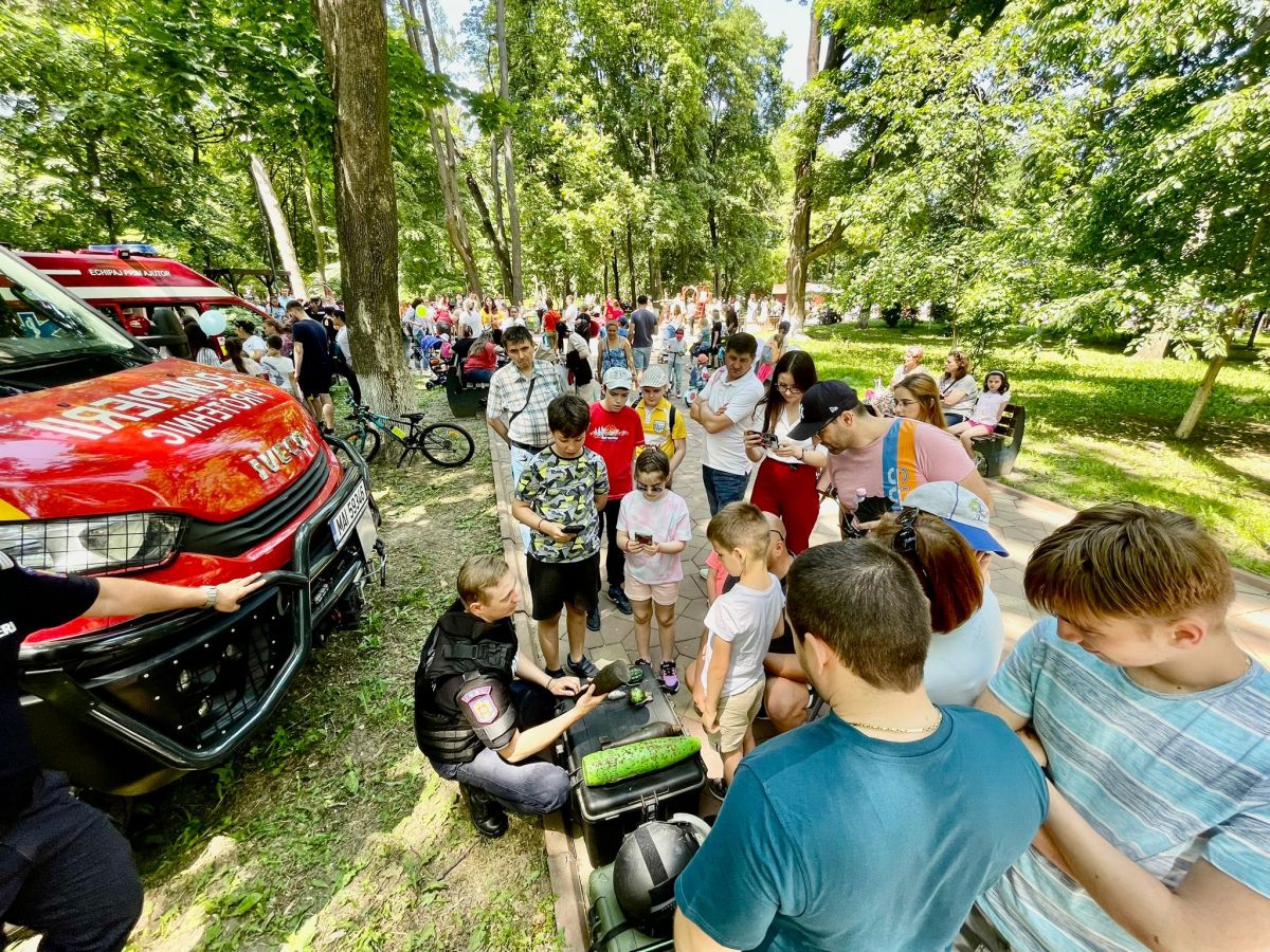 Autospeciala pirotehnică, ambulanța SMURD, dar și șenilată au fost nelipsite și în parc.
