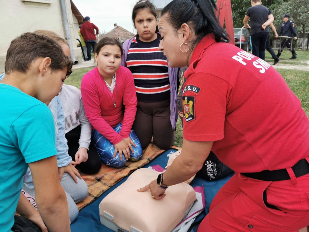 Mirabela Ciaia și Simona Cărbunaru, voluntari în cadrul programului național "Salvator din Pasiune", i-au învățat cum să execute corect manevrele de acordare a primului ajutor.