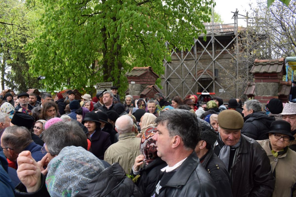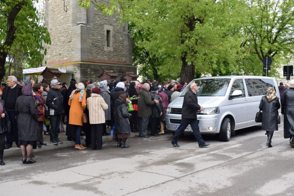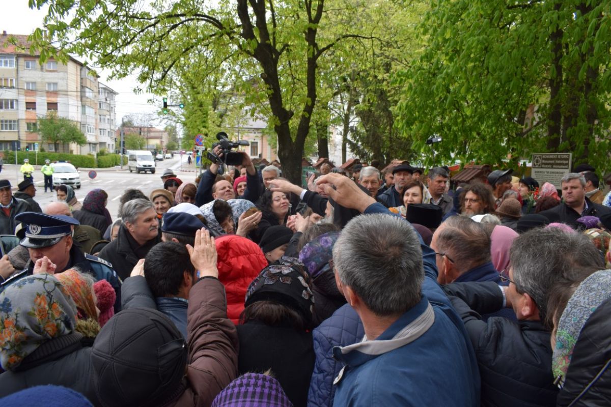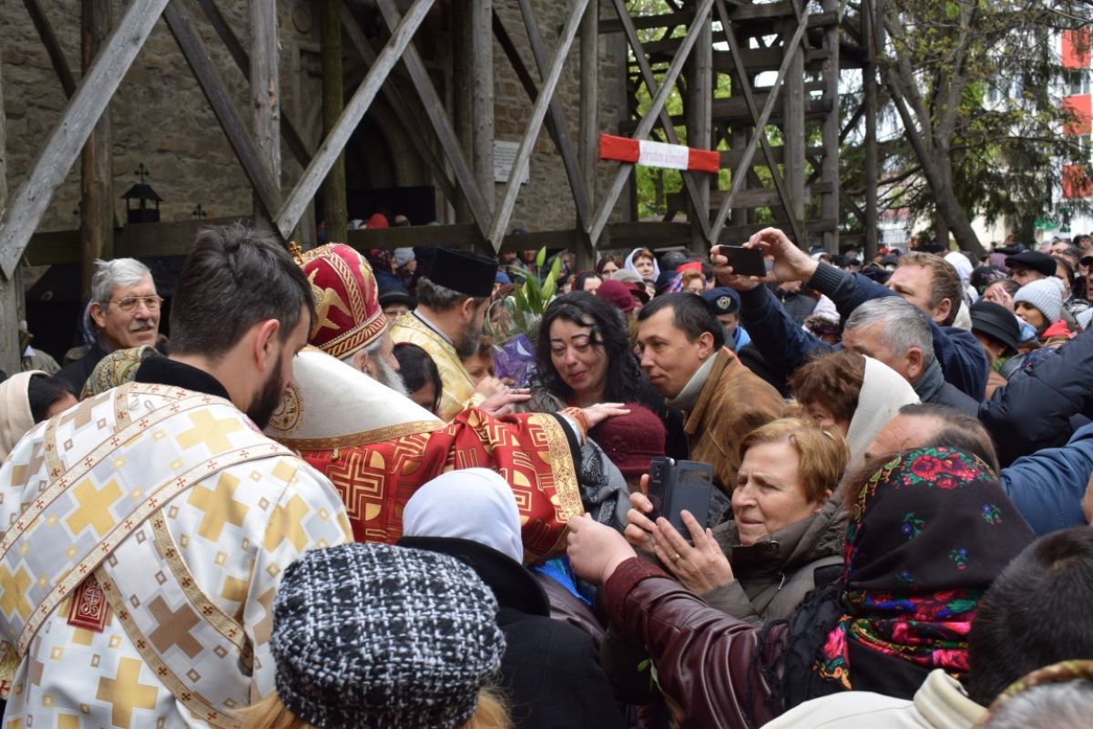 La final, când a coborât din altarul de vară amenajat în curtea Bisericii Sfântul Gheorghe, credincioșii au năvălit spre înaltul prelat pentru a primi binecuvântare.