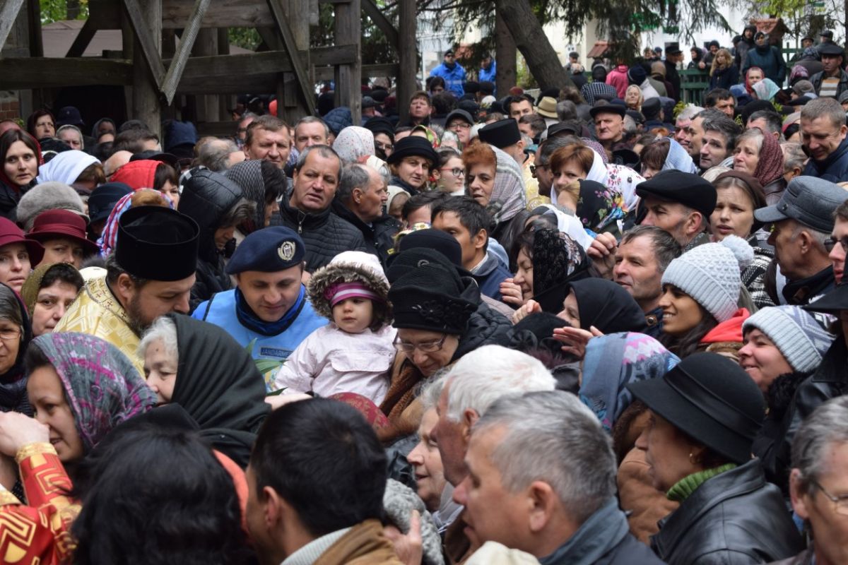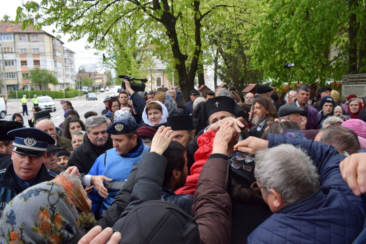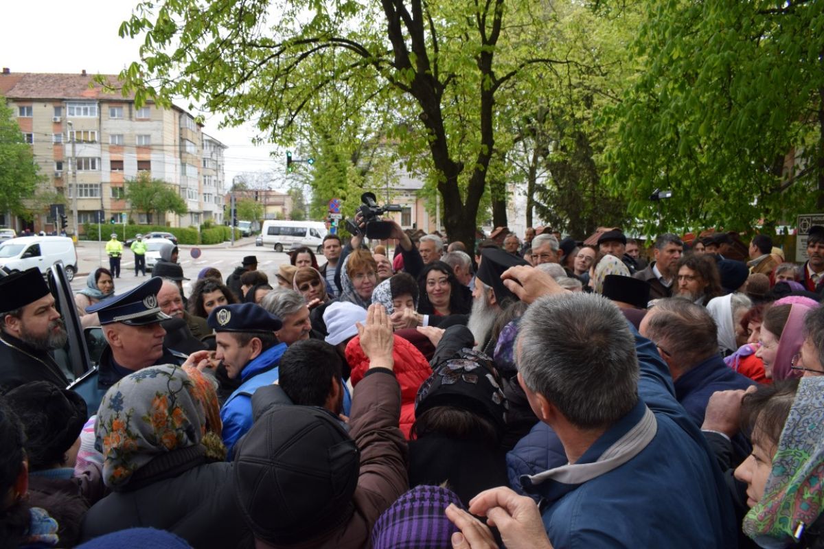 Chiar și cu aglomerația creată, ÎPS Teofan a păstrat o atitudine calmă și un zâmbet blajin pe chip continuând să atingă oamenii care cereau binecuvântare.