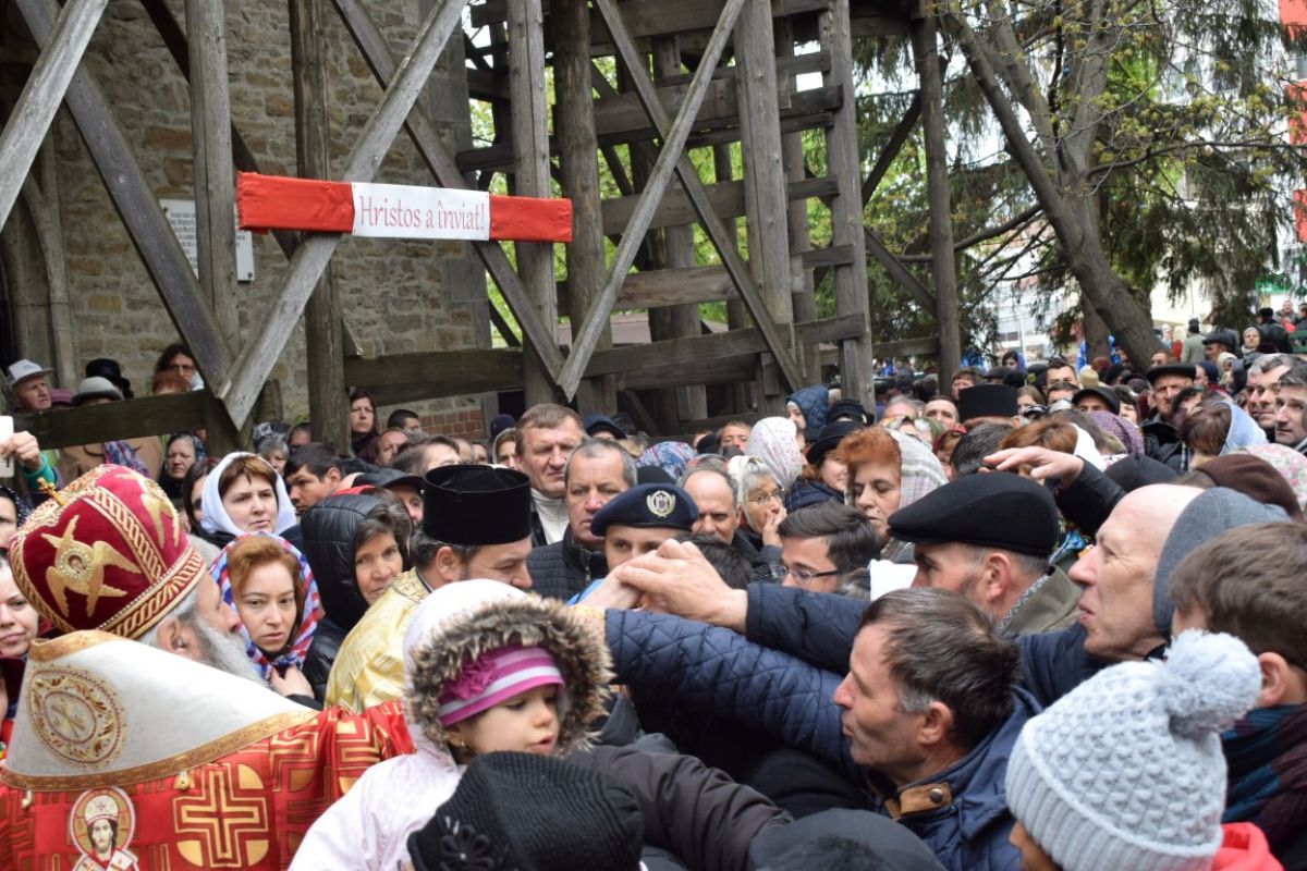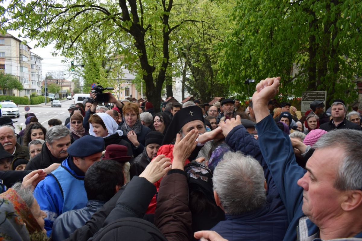 Tabloul a fost unul impresionat cu zeci și zeci de mâini întinse către mitropolitul pentru care, a fost aproape imposibil să le atingă capetele tuturor.