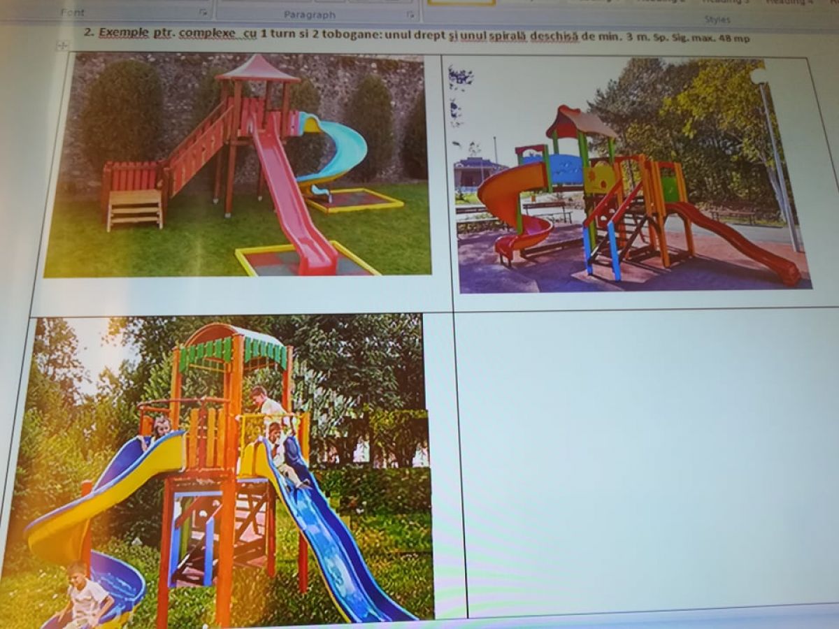 Licitația se află în plină desfășurare și face referire la furnizare și montare echipamente de joacă pentru copii, amenajare de suprafețe de joacă din tartan în vederea reutilării terenurilor de joacă existente.