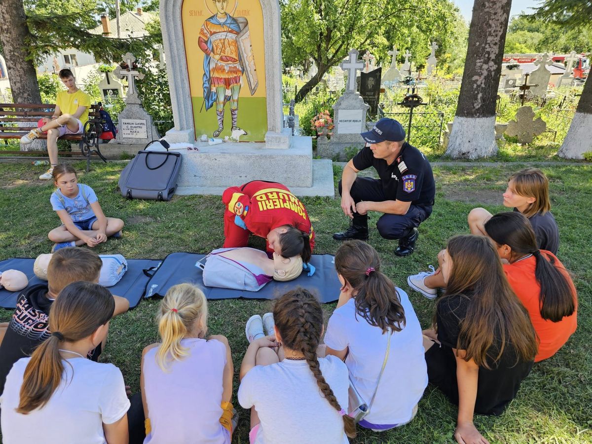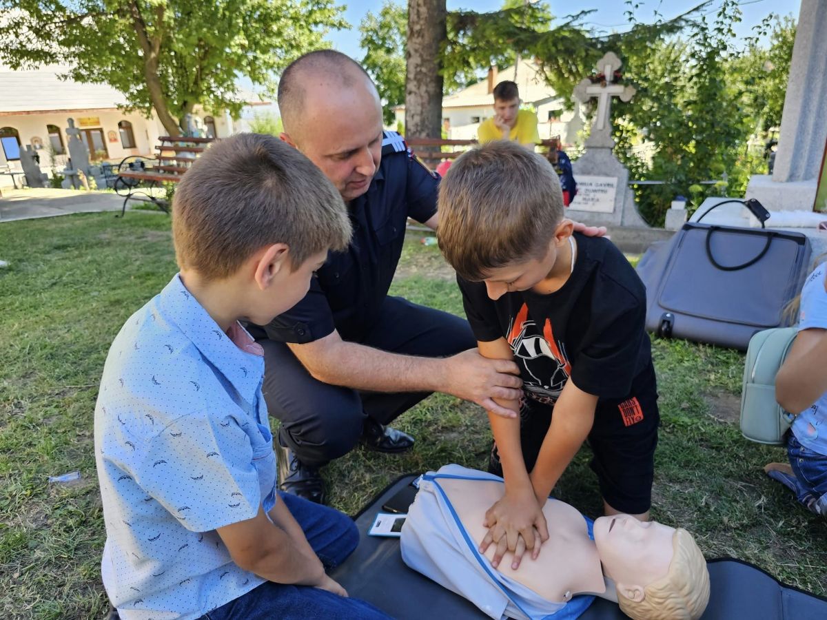 Mirabela Boca, voluntar în cadrul programului național "Salvator din Pasiune", i-a învățat cum să execute corect manevrele de acordare a primului ajutor.