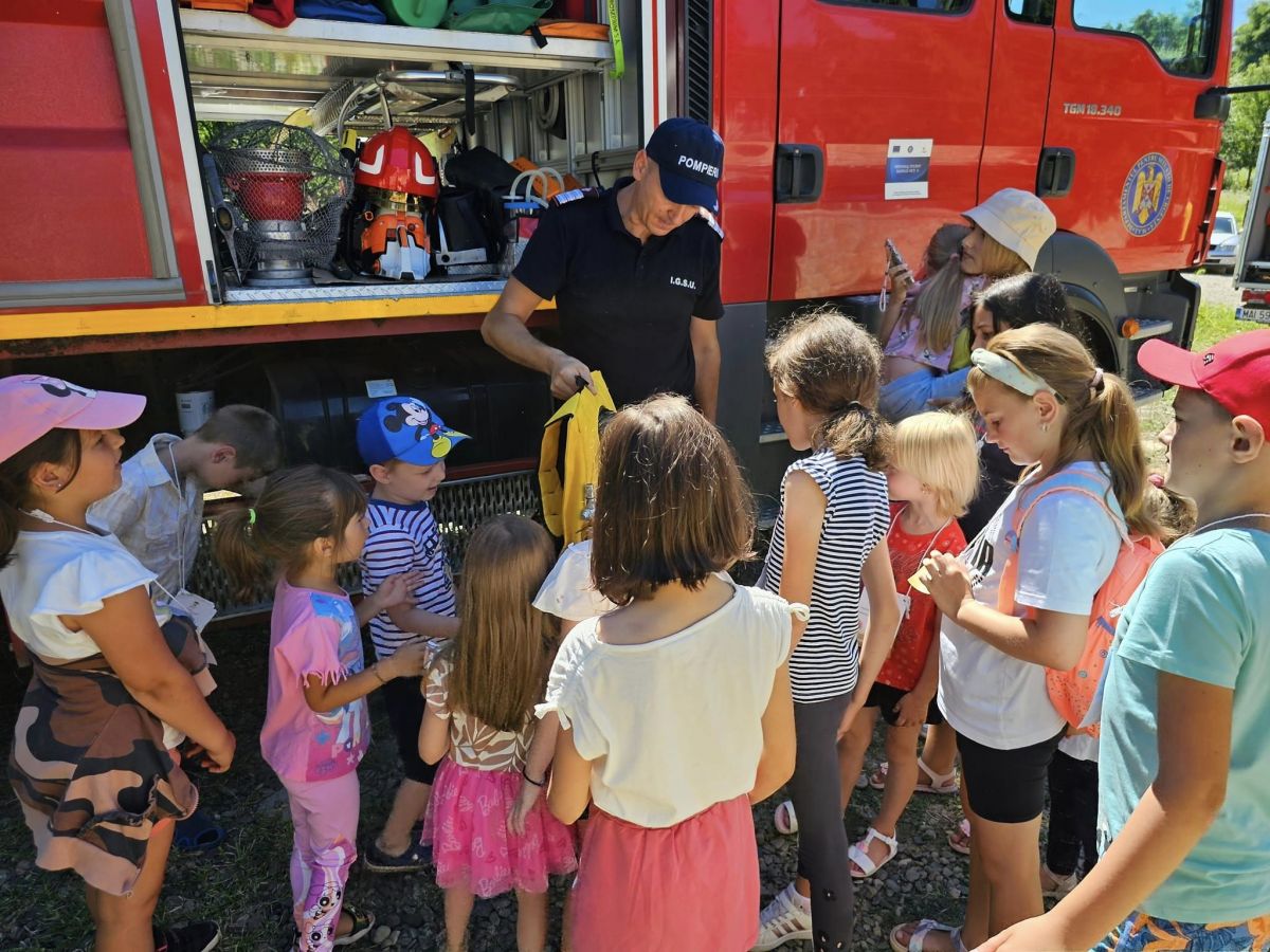 Nerăbdători să se întâlnească cu pompierii, dornici să învețe lucruri noi! Așa i-au așteptat pe salvatori, în această dimineață, copiii înscriși la Tabăra din pridvorul satului, organizată de Parohia "Schimbarea la Față" din Boscoteni.