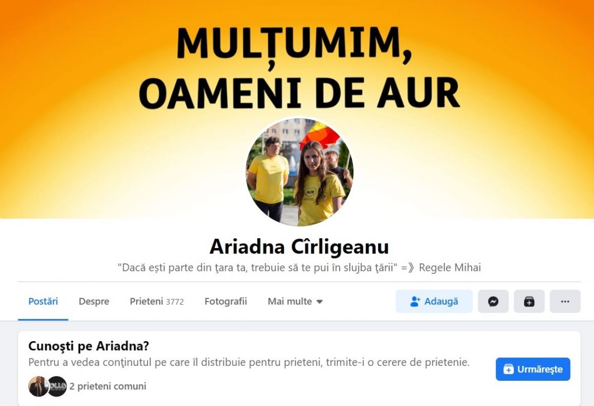 Ariadna Cîrligeanu, pe pagina sa de Facebook