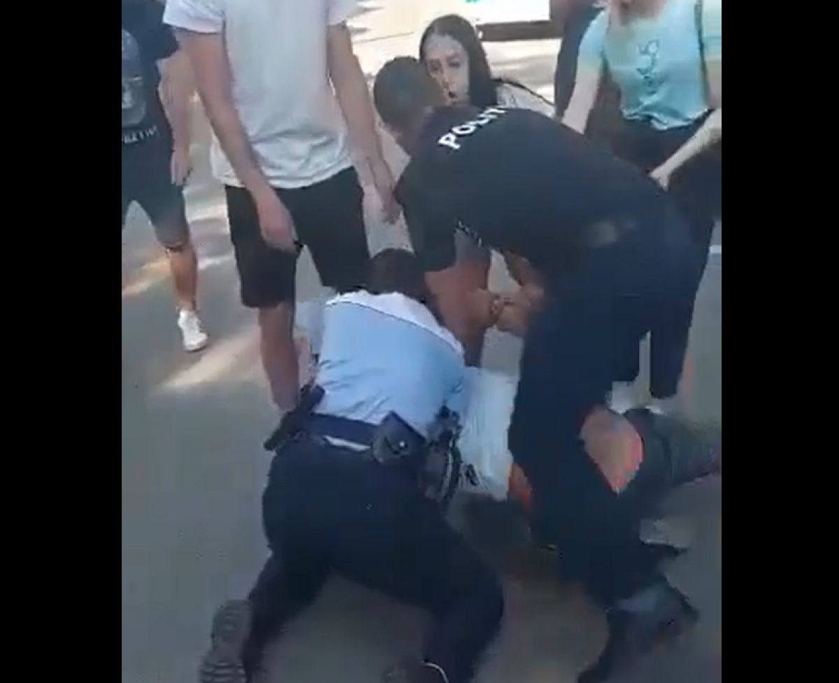 Tânărul care a lovit o polițistă în urma unui scandal izbucnit în fața unui bar a fost reținut.