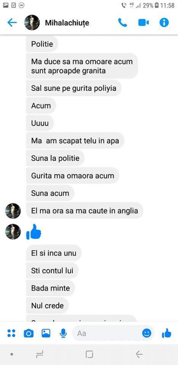 "Mă duce să mă omoare acum, sunt aproape de graniţă. Sună la Poliţie. Guriţă mă omoară acum. Sună acum. Sună dacă vrei să mă vezi, sună că dacă mă prinde mă aruncă pe apă ei. Toţi vorbiţi cu Poliţia din România, să sune şi mamaie acum.", sunt mesajele pe care femeia, conform Observator, spune că le-a primit de la nepot.