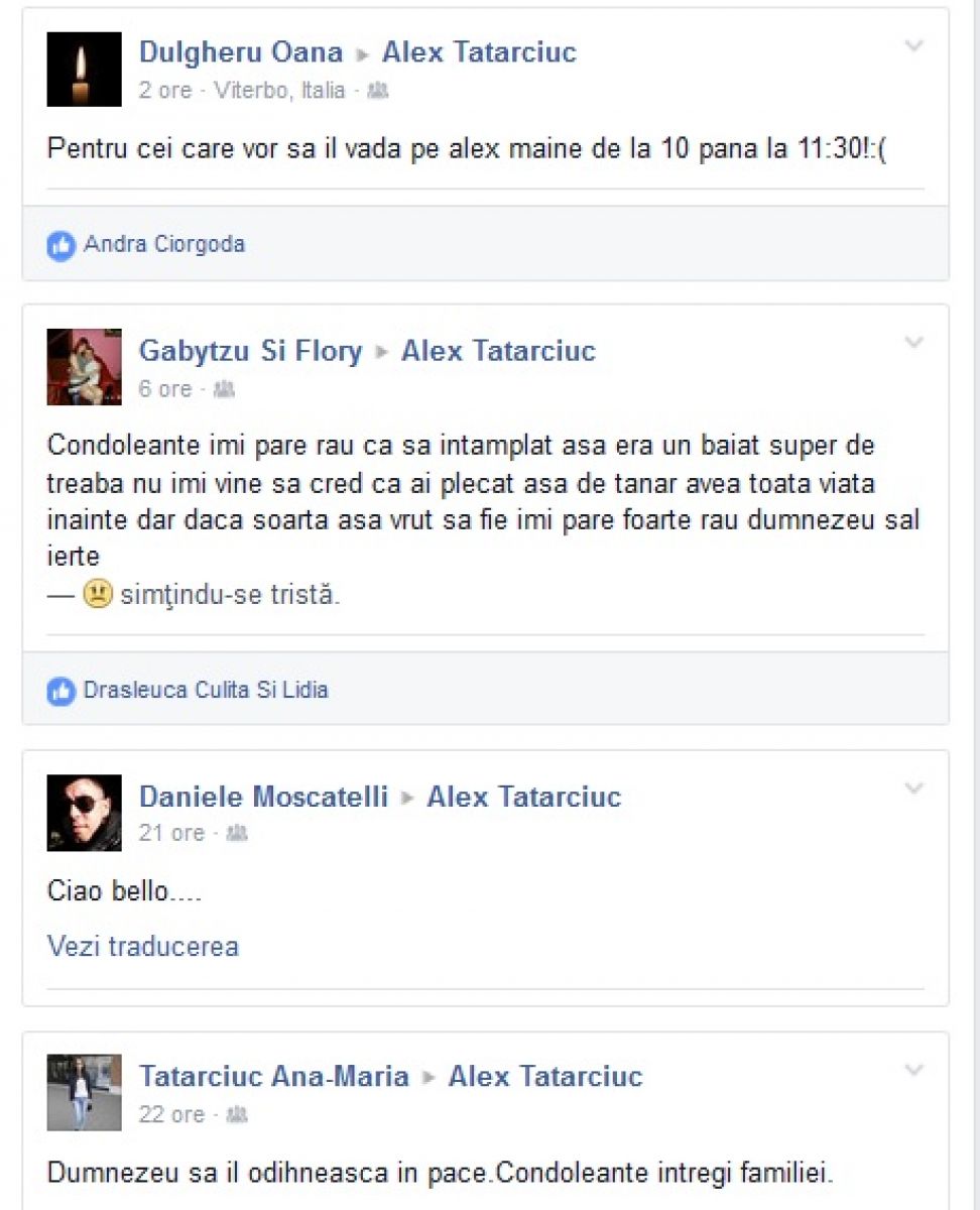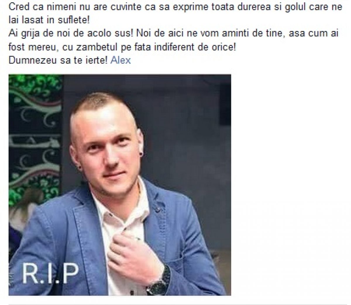 ”Acel băiat mereu cu zâmbetul pe buze, ala care nu se supăra pe tine nici daca iai face si ceva foarte rau. Atâtea clipe petrecute cu tine, atâtea râsete impreuna, chiar şi plansuri, atâtea dimineți cu micul dejun primit de la aceasta persoana la care nici nu te asteptai! Se spune ca Dumnezeu alege cele mai frumoase flori, si uite ca si acum a fost aşa. Nu cred ca cineva te va uita indiferent de defectele care le aveai, pentru ca nimeni nu e perfect. Odihneşte-te in pace suflet bun, nu te voi uita Alex”, sunt doar câteva dintre mesajele postate în mediul virtual.