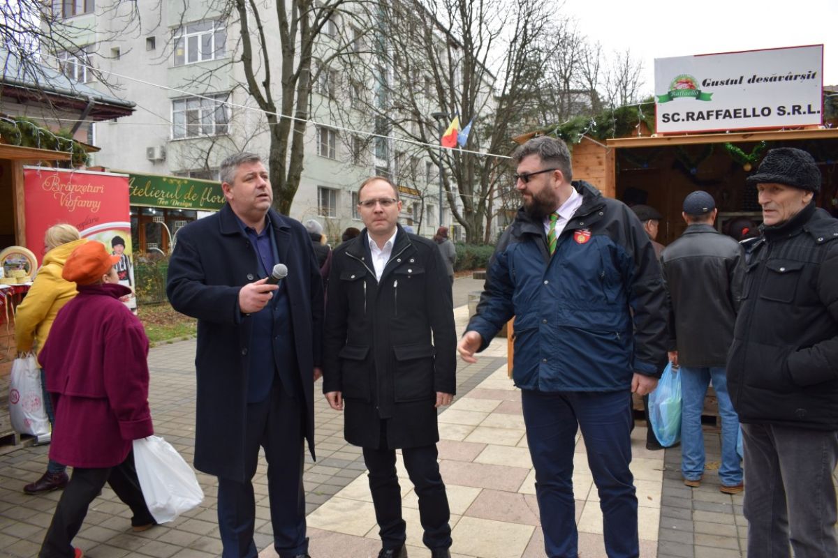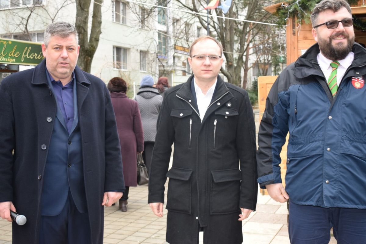 Au deschis Târgul de Crăciun viceprimarul Cosmin Andrei și consilierul local Eugen Țurcanu, împreună cu unul dintre consilierii primarului.