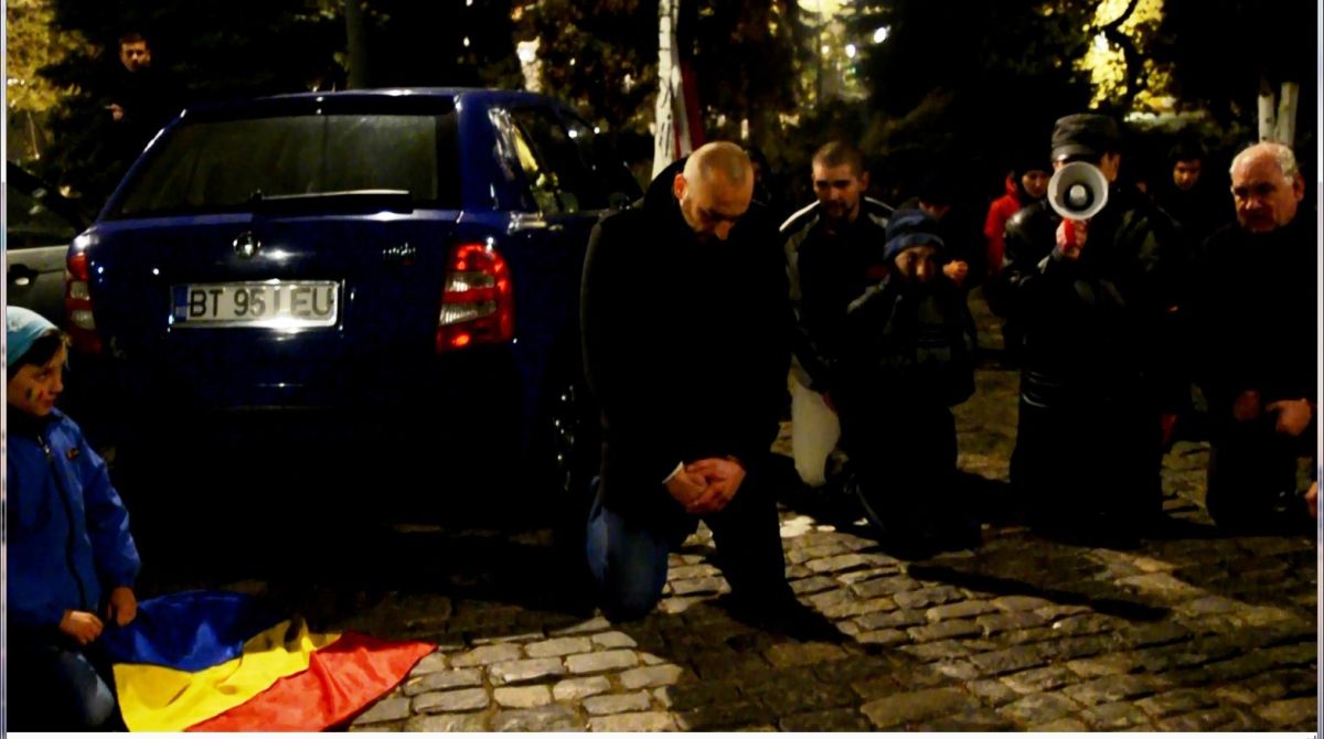 A patru zi de manifestaţii din Botoşani a început cu un moment emoţionant. Bogdan Cărăuşu, liderul protestatarilor, a cerut celor prezenţi să rostească împreună „Tatăl nostru”.