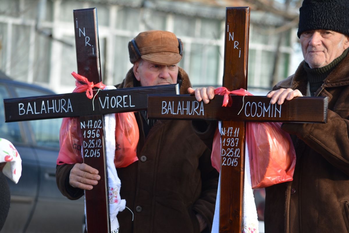 La atâta lume prezentă liniștea era cu adevărat una... mormântală. Pe ulița dinspre casă și în curte se îngrămădeau sute de oameni, inclusiv primarul de Păltiniș, Costel Romanescu. Sicriile celor doi erau în mijlocul ogrăzii, iar de acolo au fost purtate în mâini spre lăcașul de cult. Oameni în toată firea, tineri și pensionari, podidiți de lacrimi, refuzau parcă să accepte că Viorel și Cosmin Balahura pleacă dintre ei, dând din cap... ”nu se poate, nu se poate”.