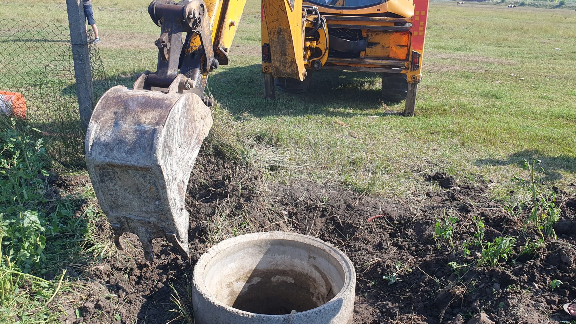 Pentru a putea ajunge la animal, s-a săpat în jurul fântânii și s-a îndepartat primul tub, cu ajutorul utilajului.
