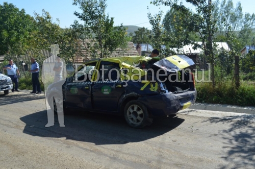 Dacia Logan esre condusă de Radu Aciobăniței de 22 de ani, care însă nu efectua o cursă în momentul în care a făcut accidentul. Tânărul șofer se afla în mașină cu încă trei persoane, dintre care un băiat de 13 ani. Mașina care venea dinspre Balta Arsă, de unde sunt de loc persoanele implicate în eveniment, circula cu foarte mare viteză. La un moment dat șoferul a pierdut controlul volanului, s-a izbit într-un cap de pod de pe partea dreaptă a drumului, a rupt un gard și un copac, iar mai apoi a fost proiectat pe sensul opus de mers. Sătenii care se aflau în curți au sărit și i-au scos din mașina boțită pe cei aflați captivi între fiare. Cel mai grav se pare că era copilul care avea o mână ruptă și mai multe traumatisme.