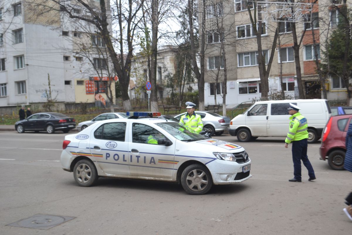 În parcarea de la Spitalul Județean au ajuns și polițiștii pentru a dirija circulația.