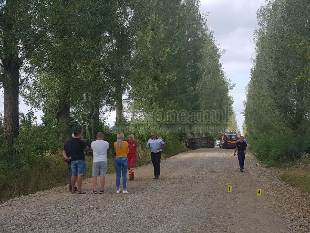 În spate, la câteva zeci de metri de acest loc se aflau soțul ei și fiul lor de 25 de ani. Toți trei fuseseră în mașina care s-a răsturnat pe un drum județean cu mult pietriș, dificil de condus din cauza pericolului de derapaj.