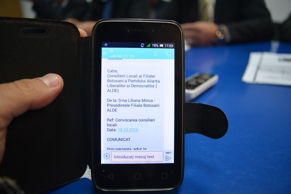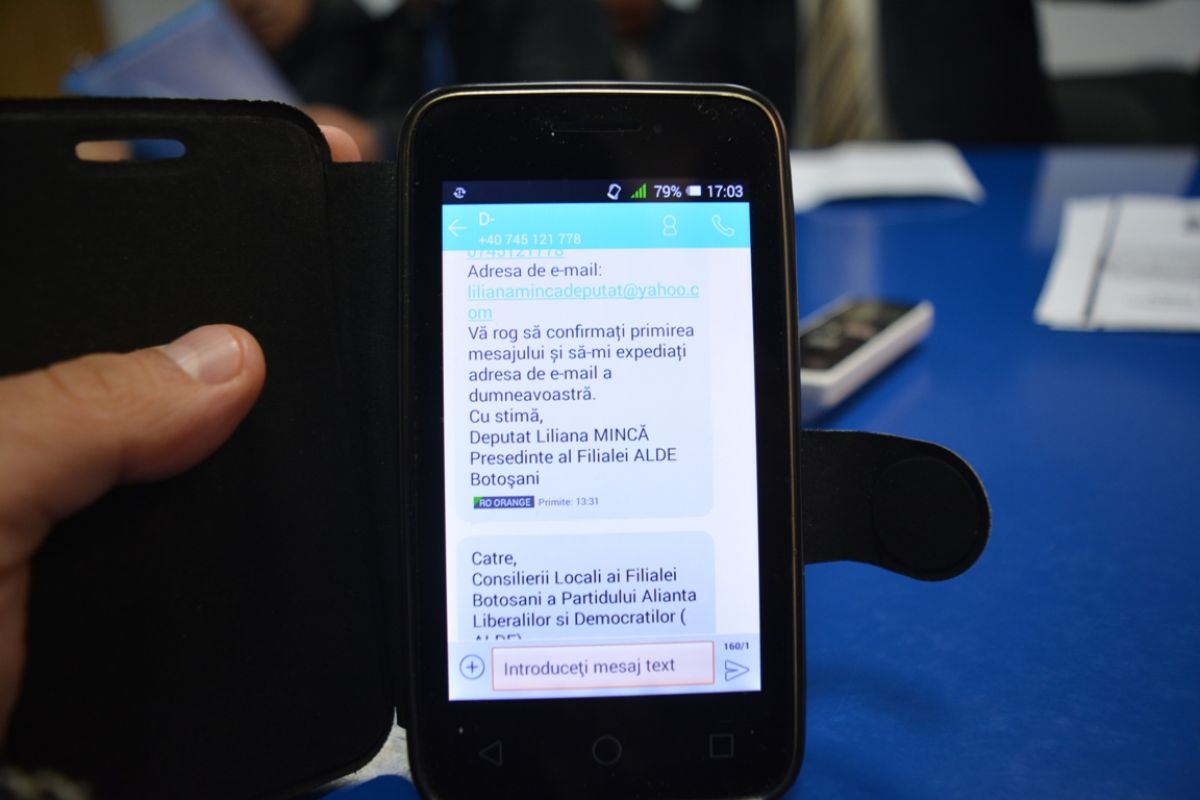 Liliana Mincă, preşedinte ALDE Botoşani, prin SMS, pe 18 octombrie.