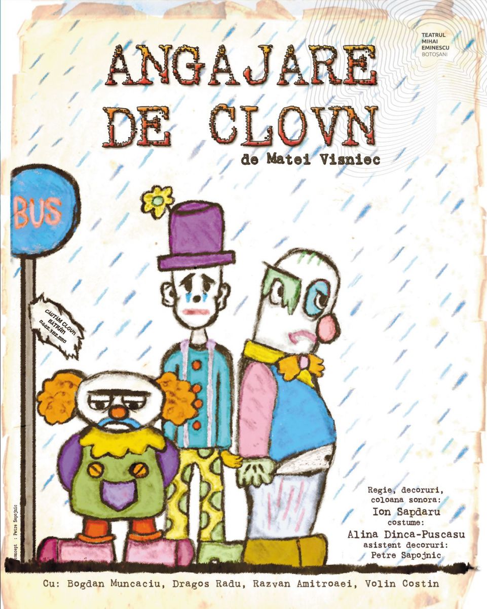 „Angajare de clovn” este ultima piesă scrisă în România de Matei Vișniec, în 1986, înainte de emigrarea dramaturgului la Paris. Cel mai jucat autor român contemporan a primit Premiul UNITER pentru cea mai bună piesă românească în 1991.