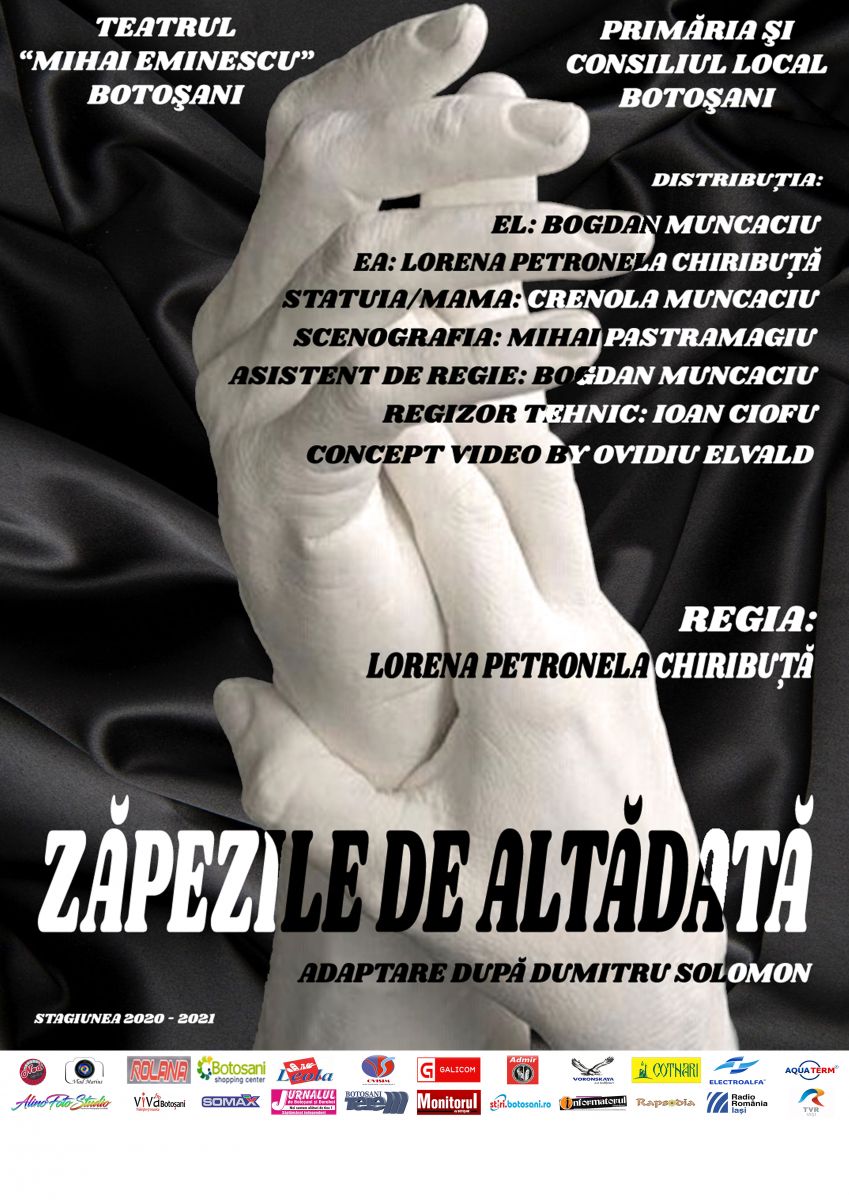 Spectacolul „Zăpezile de altădată” este o ilustrare a realităţii cotidiene - a singurătăţii în doi, dar şi a dorinţei de regăsire şi întregire prin el sau ea într-o poveste nemuritoare de iubire. Ne vorbeşte despre fiecare dintre noi aşezaţi de Soartă, Destin, Dumnezeu în faţa iubirii şi a neiubirii. Ne vorbeşte despre singurătate, doi şi mai ales despre amintirea a ceea ce cândva a însemnat apropiere, tandreţe şi promisiunea unei iubiri eterne. Dialogul celor doi peste 11 ani de rutină, rugină şi oboseală fizică dar şi sufletească este presărat cu un comic de situaţie inevitabil într-un cuplu în care efervescenţa vieţii şi a iubirii s-a stins ca un vulcan, s-a destrămat ca o pânză de paianjen. Rămâne însă posibilitatea regăsirii şi a recompunerii acelor bucăţi de suflet şi de sentimente care să depăşească limita umană şi să contrazică vocea Destinului. Dacă cele două personaje Vlad şi Natali pot depăşi condiţionarea vieţii printr-o simplă îmbrăţişare şi un Te Iubesc... rămâne de văzut.