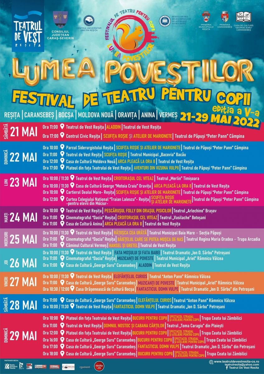 Teatrul pentru Copii și Tineret „Vasilache” va participa în perioada 23 – 25 mai 2022, la Festivalul de Teatru pentru Copii „Lumea Poveștilor”, ediția a V-a, festival organizat de Teatrul de Vest din Reșița.