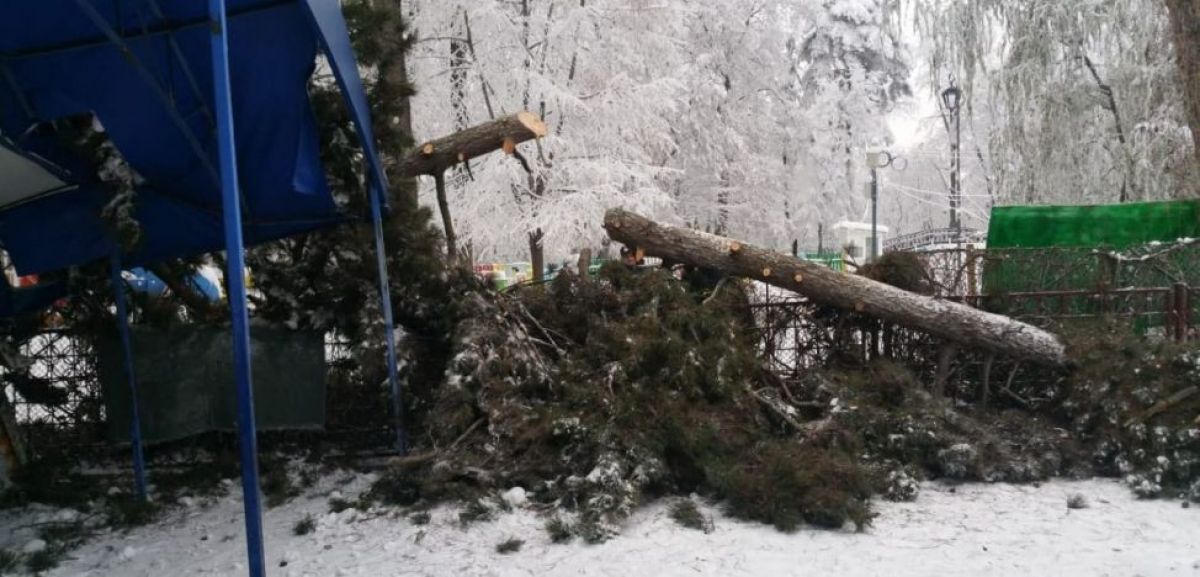 Ieri după-amiază bradul a cedat şi s-a prăbuşit peste gardul şi terasa localului. Frigul de afară a făcut ca nimeni să nu fie rănit. La faţa locului a sosit şi un echipaj de pompieri care a degajat locul. Totodată administratorii locului intenţionează să acţioneze în judecată Primăria Botoşani, având în vedere că bradul se afla în parc, adică pe proprietatea municipalităţii.