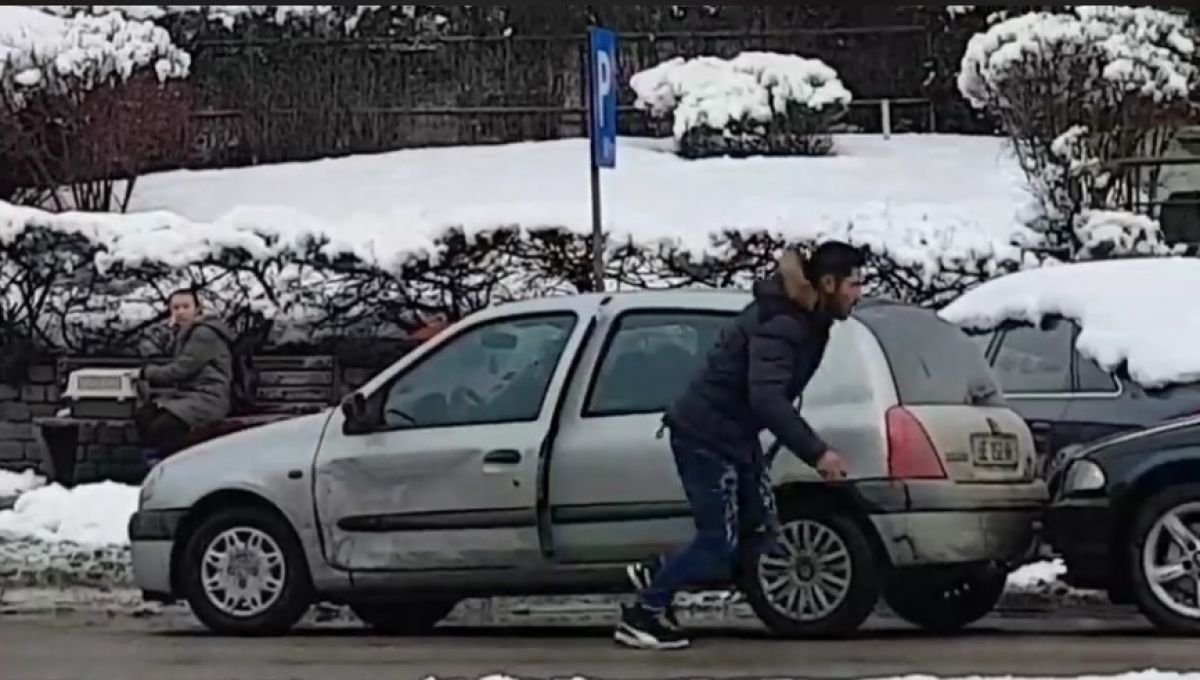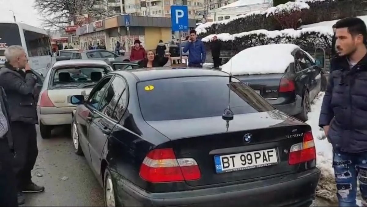 Văzând că nu poate să provoace pagube la Renault, tânărul șofer din BMW-ul cu numărul BT 99 PAF a plecat în fugă spre mașina pe care o conducea, de unde s-a întors cu o bâtă.