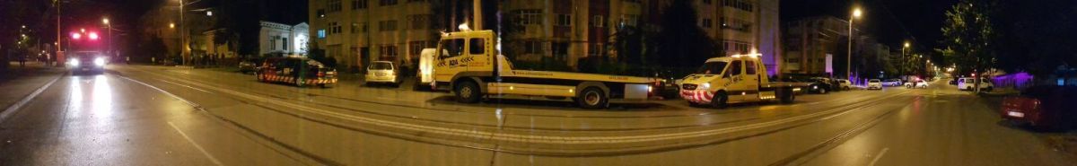 Intersecţia străzilor Ion Pillat – Victoriei părea desprinsă dintr-un film în noaptea de marţi spre miercuri. Chiar în jurul orei 12:00 o bubuitură a speriat locatarii din zonă.