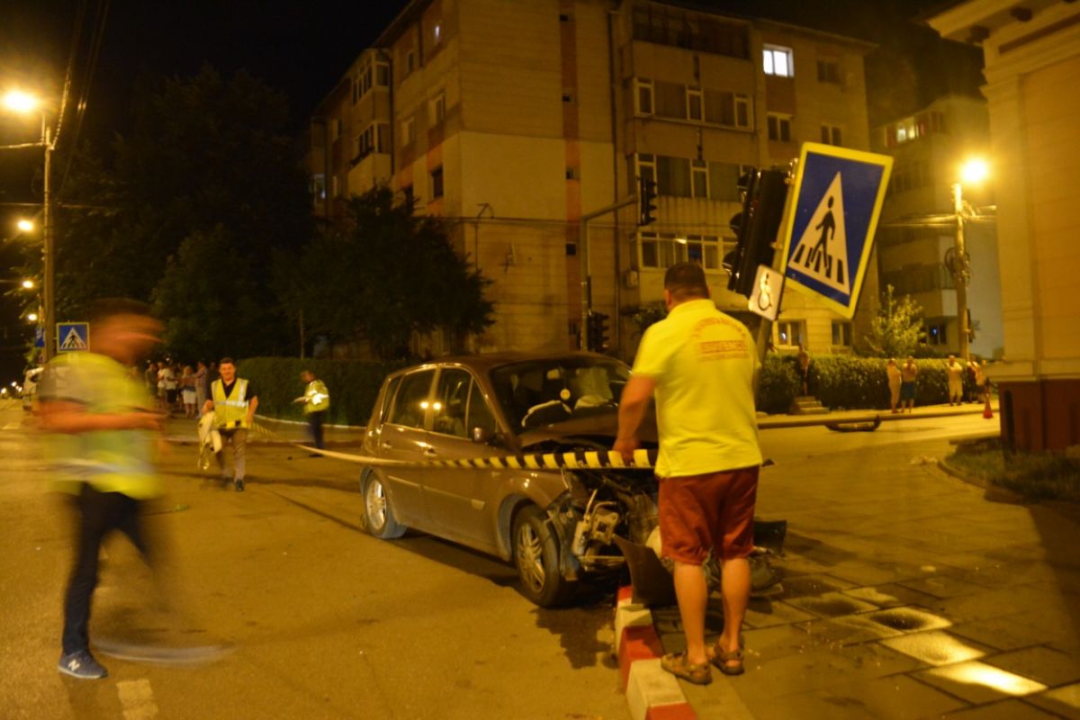 Un Audi înmatriculat în Franţa, care venea dinspre Modarom, a intrat pe drumul principal fără să acorde prioritate şi a izbit atât de tare un Renault Scenic care cobora de la Luceafărul încât l-a răsucit şi l-a izbit într-un indicator. Maşina germană s-a oprit din cursă în gardul viu, la aproximativ unu-doi metri de bloc, trezindu-i instantaneu pe oamenii de la parter.