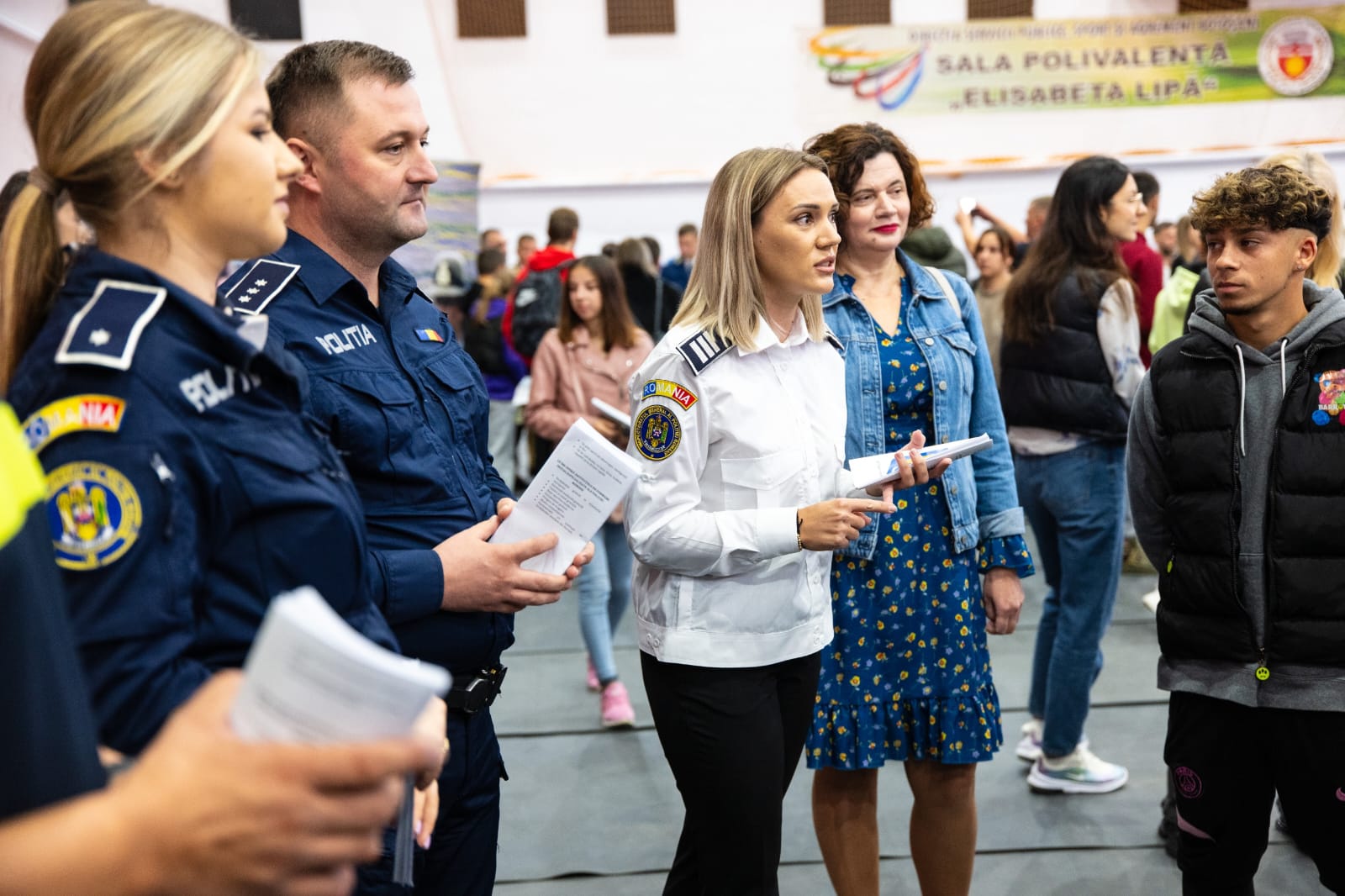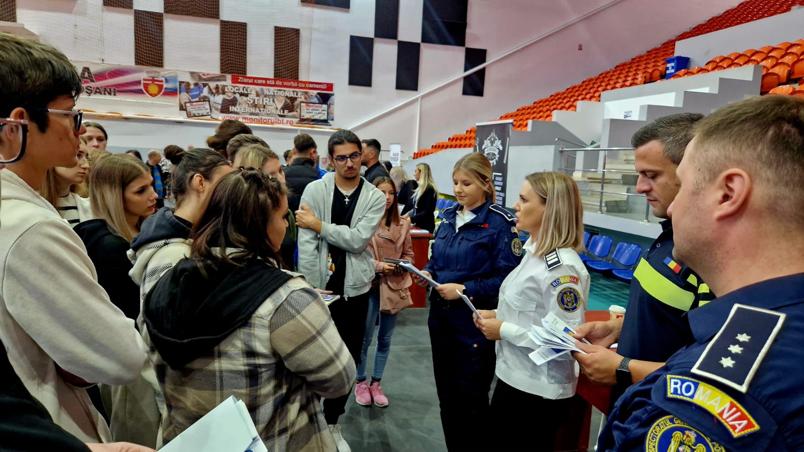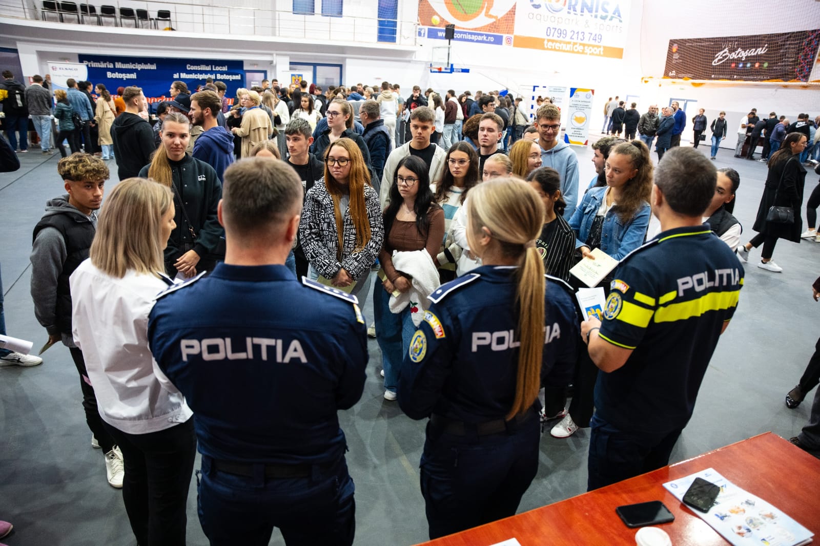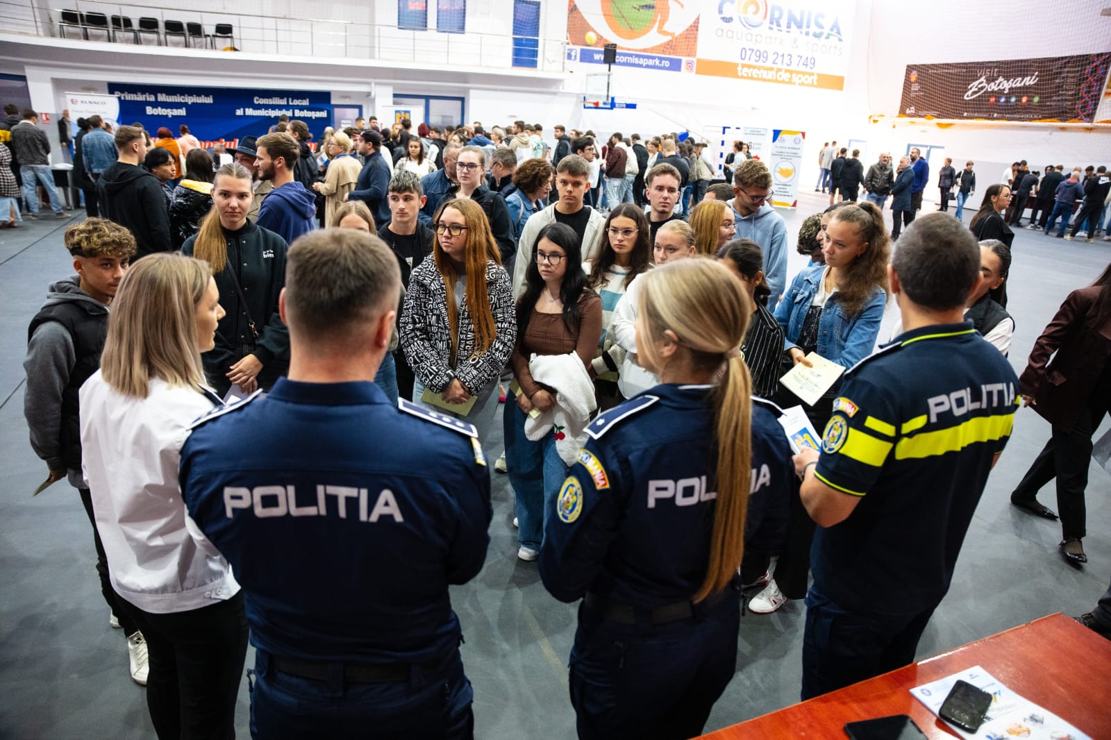 Împreună cu specialiști în resurse umane și o tânără, proaspăt absolventă a Academiei de Poliție „Al. Ioan Cuza”, oamenii legii interacționat cu cei care își doresc o carieră în Poliția Română.