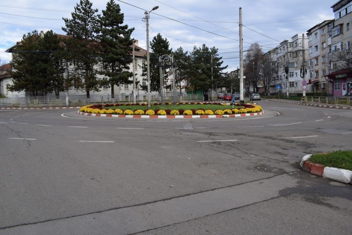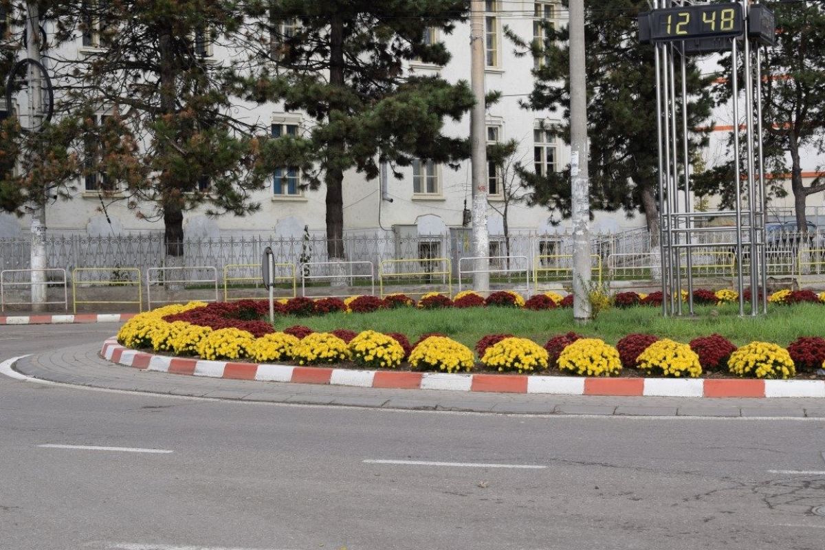 Tabloul este întregit de florile specifice acestui anotim, ce au fost plantate de muncitorii serviciului edilitar din Primărie, în mai multe zone ale orașului.