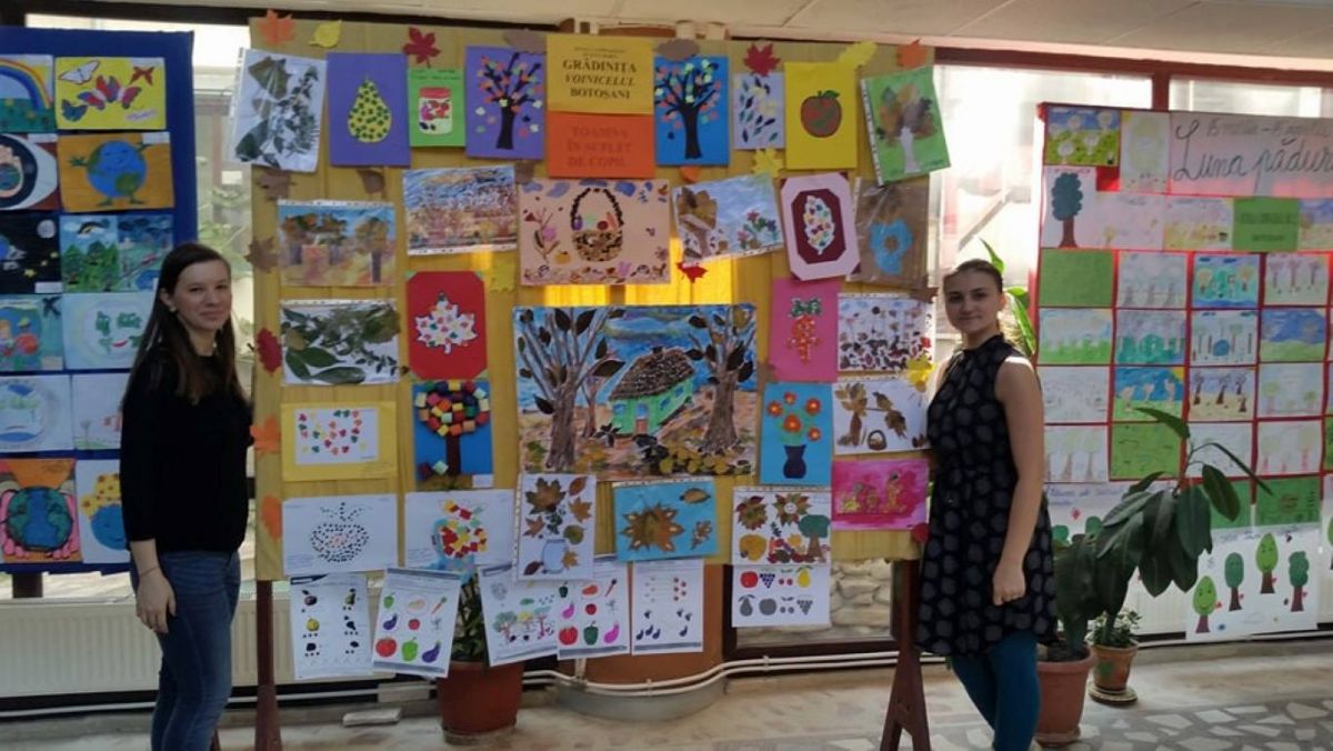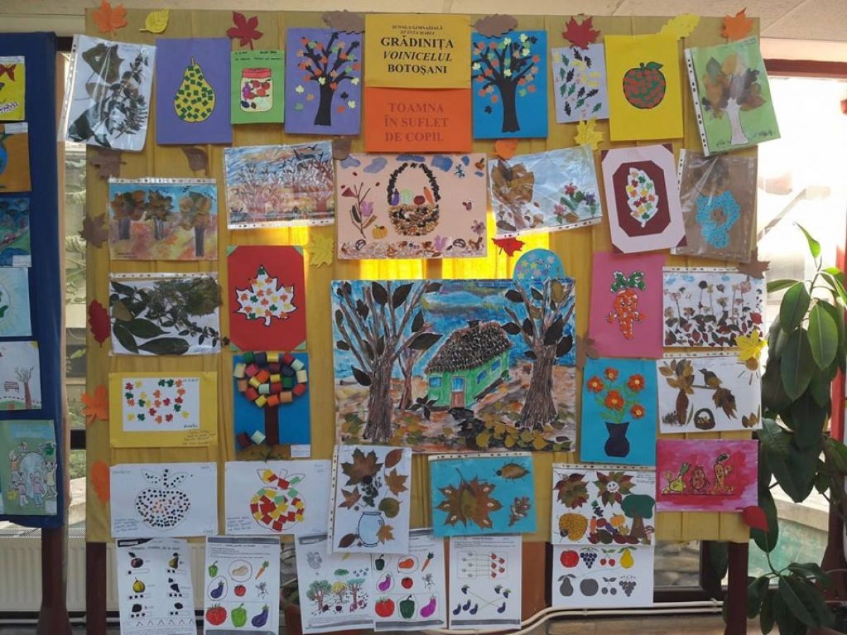 Micuţii din toate grupele, împreună cu educatoarele şi părinţii, au contribuit cu tablouri de toamnă la amenajarea expoziţiilor amenajate în sediul Agenţiei pentru Protecţia Mediului Botoşani şi la Filiala nr. 1 (din strada Primăverii) a Bibliotecii Judeţene “Mihai Eminescu”.
