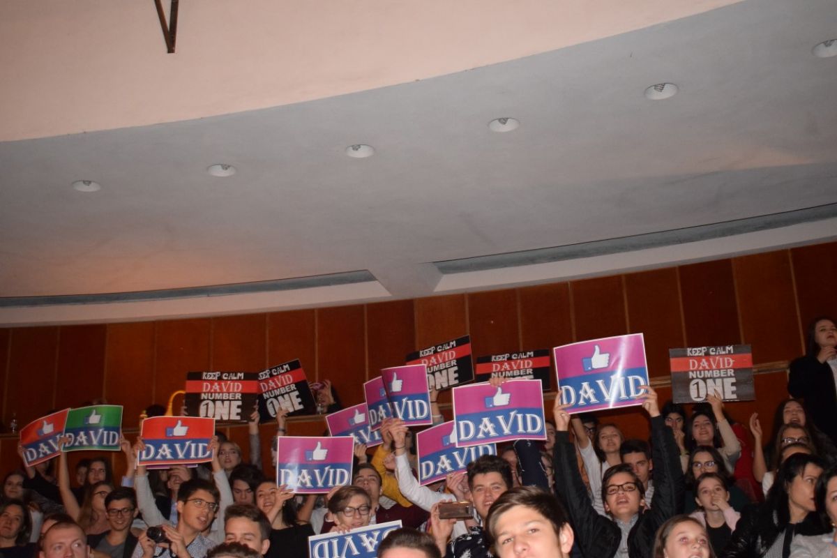 Concurenții și-au făcut apariția, iar ploaia de aplauze aproape că nu mai contenea să se oprească. Susținătorii își strigau favoritul, fluturând pancartele pregătite cu multă atenție. Sala era arhiplină de colegi, prieteni, părinți ai concurenților.