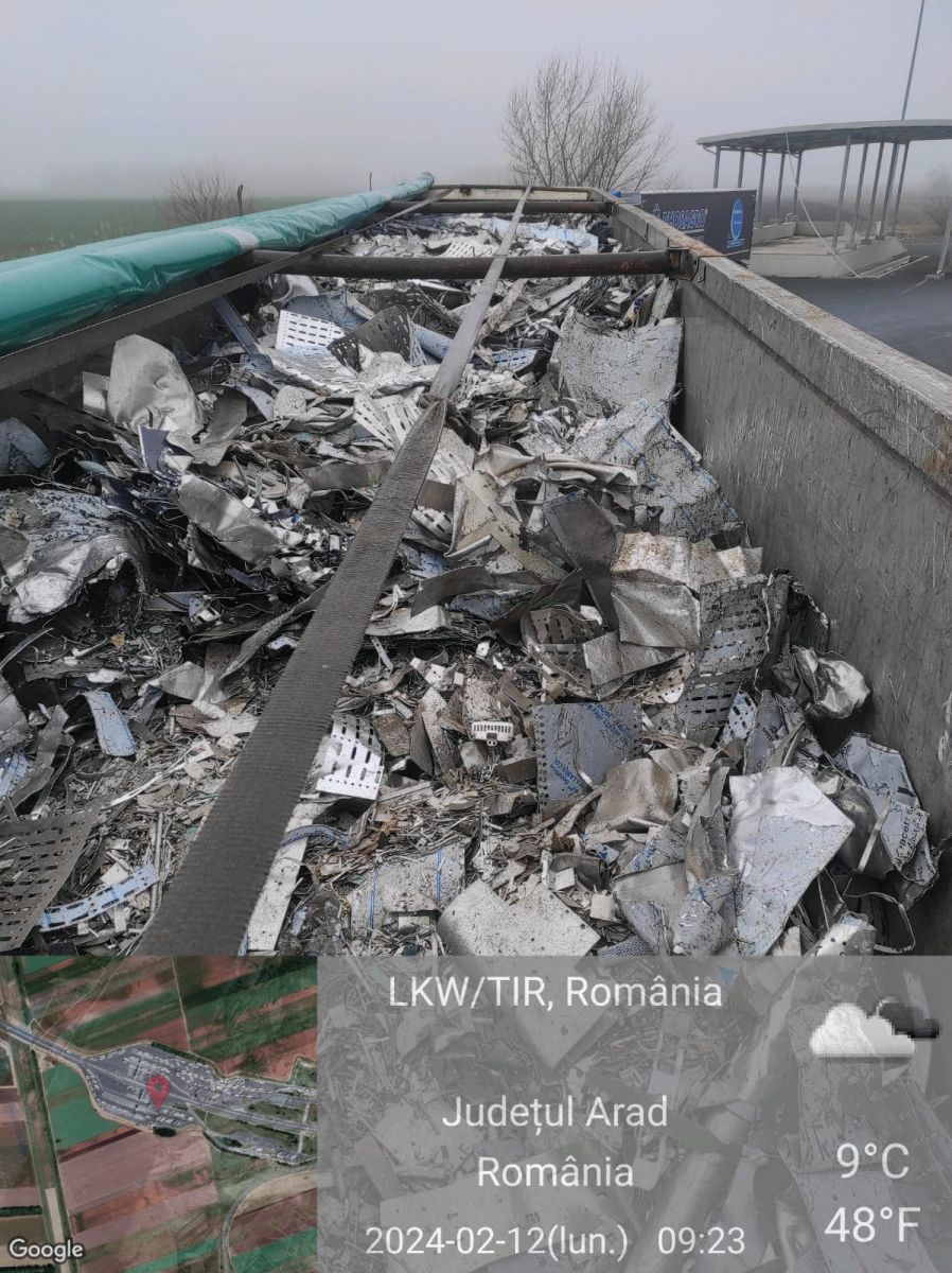 În doar opt zile, în perioada 9-16 februarie 2024, în punctele de trecere a frontierei Borș II și PTF Nădlac II, comisarii Gărzii Naționale de Mediu - comisariatele județene Bihor și Arad, nu au permis intrarea în țară a 12 transporturi însumând aproximativ 115 tone de deşeuri.