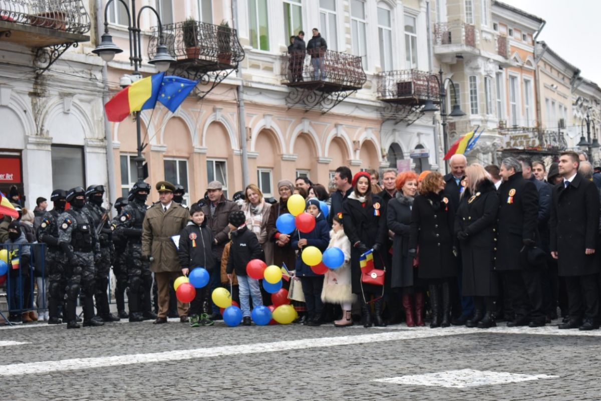 La partea de discursuri singurii care au avut alocuțiuni au fost prefectul Sorin Cornilă, președintele Consiliului Județean, Doina Federovici, primarul Cosmin Andrei și Ovidiu Damian, șeful Garnizoanei Militare.