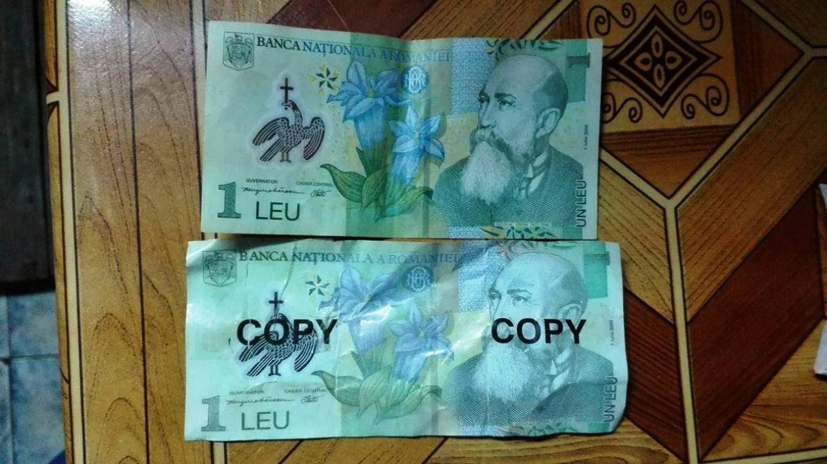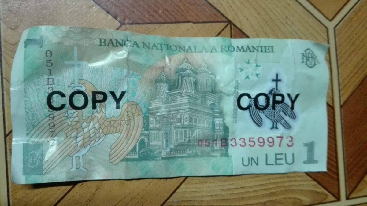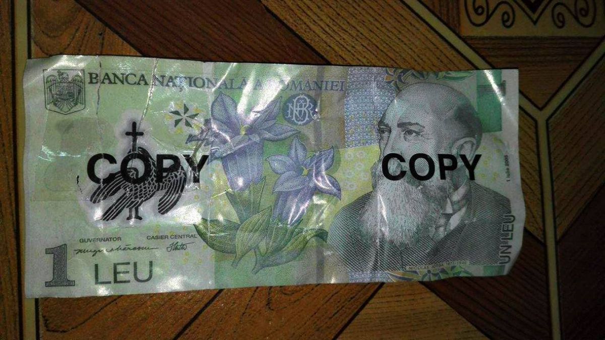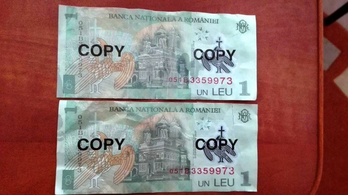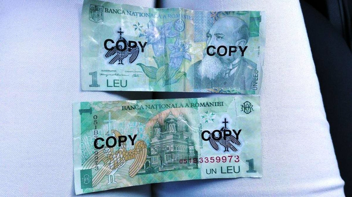 Banii, care sunt un fals grosolan însă pot trece ușor mai ales în baruri sau magazine de cartier, au fost depistați în Parcul Tineretului. Bancnote de 1 leu pe care erau înscrise, față și verso, însemnele ”copy” în culoarea neagră.
