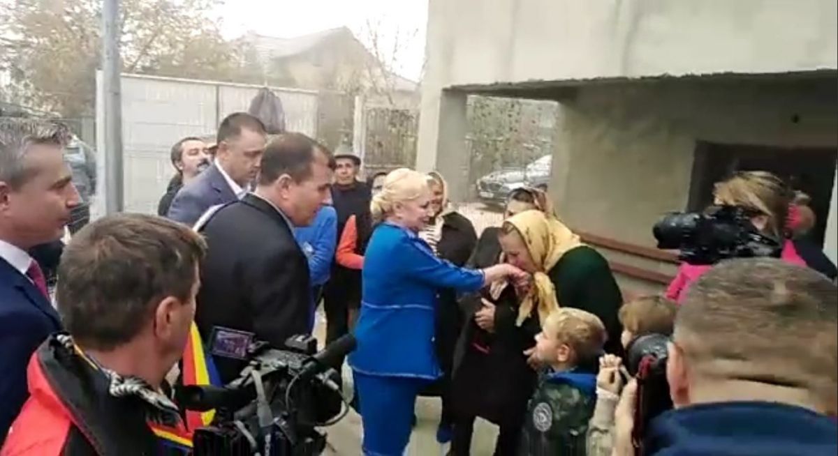 Viorica Dăncilă a trecut natural mai departe, fără nici cea mai mică intenție de a-și retrage totuși mâna, în fața unei femei simple și fără carte, de la țară.