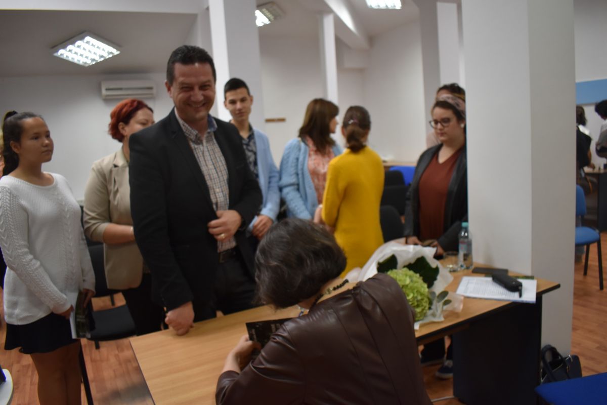 Înainte de sesiunea de autografe, moderatoarea întâlnirii l-a invitat pe Bogdan Suruciuc, inspectorul școlar general în cadrul Inspectoratului Școlar Județean Botoșani, să adreseze câteva cuvinte celor de față.