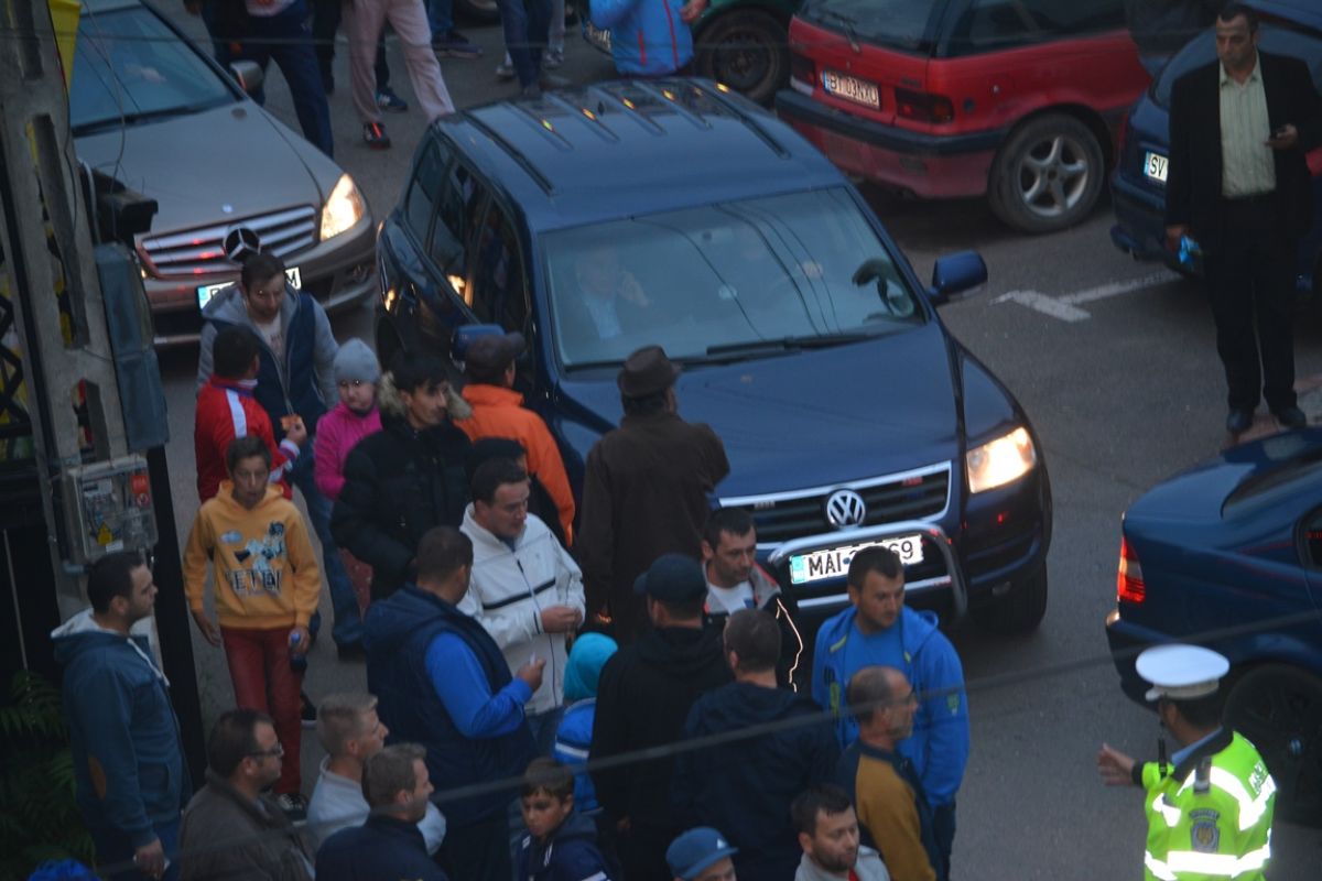 La vreo cinci minute după Valeriu Iftime, printre sutele de oameni prezenți în zonă și-a făcut apariția și prefectul Dan Nechifor. Aflat în afara programului de lucru și fără să îndeplinească vreo misiune, primul reprezentant al Guvernului în Botoșani a venit la meci cu VW Touareg al Prefecturii, care pe deasupra era condus și de șofer, prefectul coborând la câțiva pași de tribuna oficială.