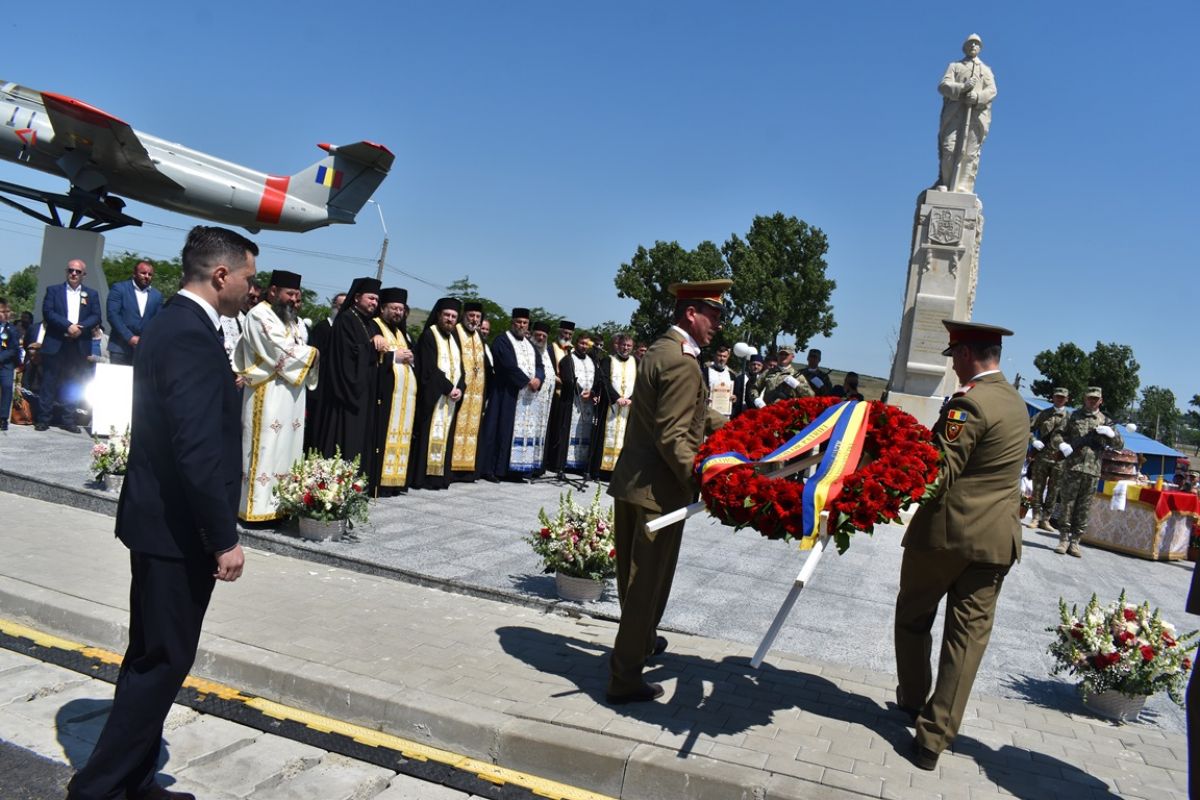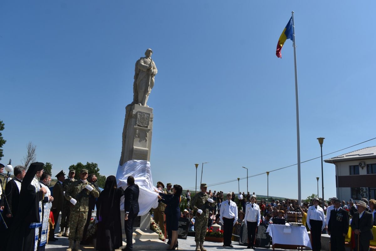 După ce a avut o contribuție decisivă la restaurarea Bisericii Sfântul Nicolae din centrul comunei, peste drum, părintele arhimandrit Ciprian Grădinaru, fiu al satului și cetățean de onoare, a inițiat construcția unui ansamblu care, pe lângă monumentul propriu-zis realizat de sculptorul Ion Lozan din Soroca, Republica Moldova, include un avion Delfin L 29, simbol al Forțelor Aeriene Române și un obuzier cu calibrul de 122 disponibilizat de Armata Română.
