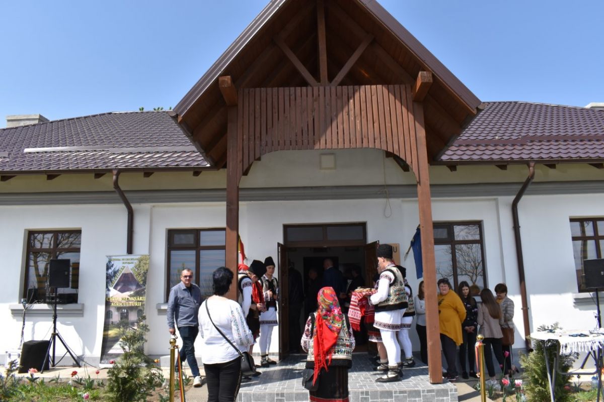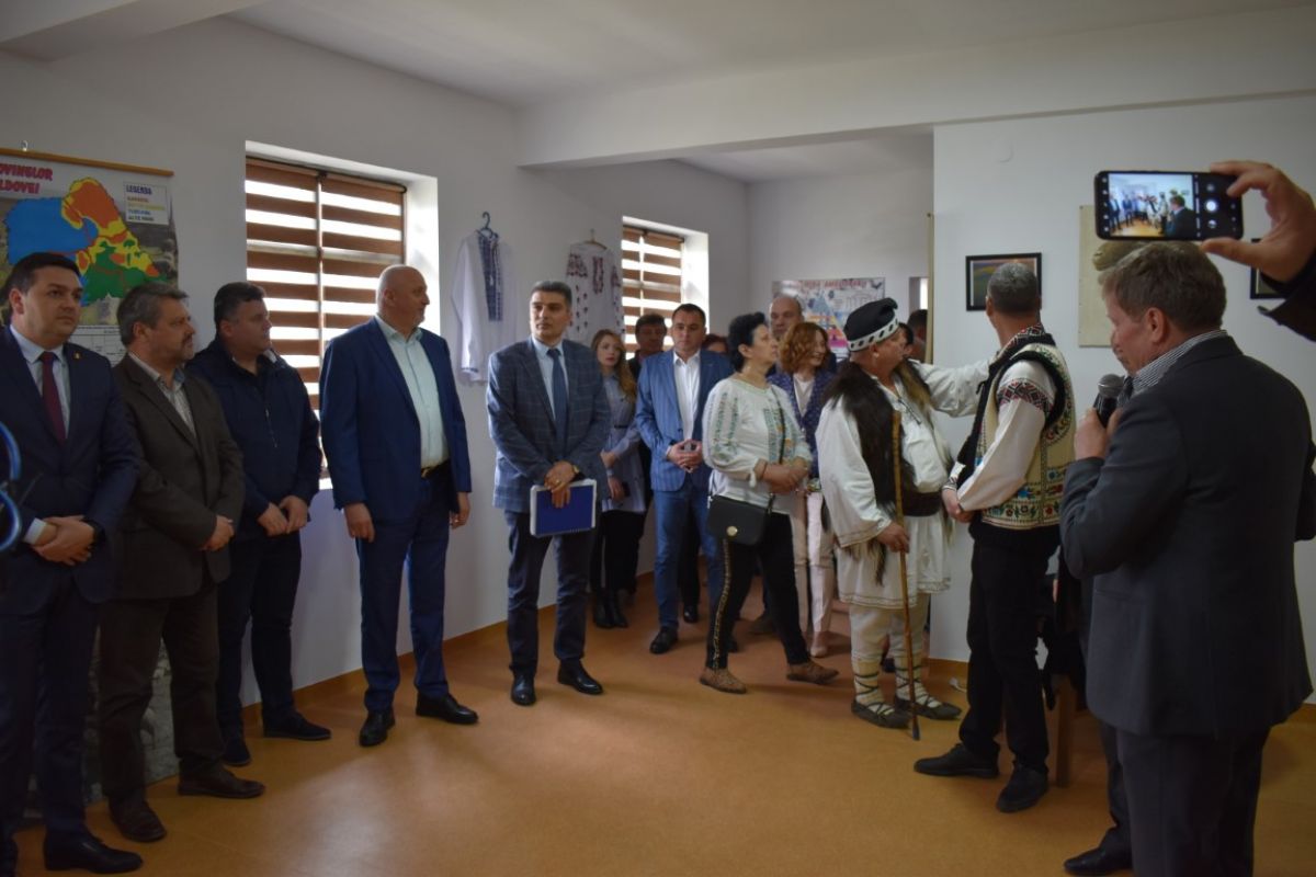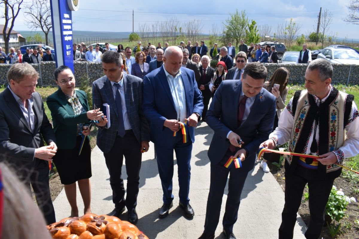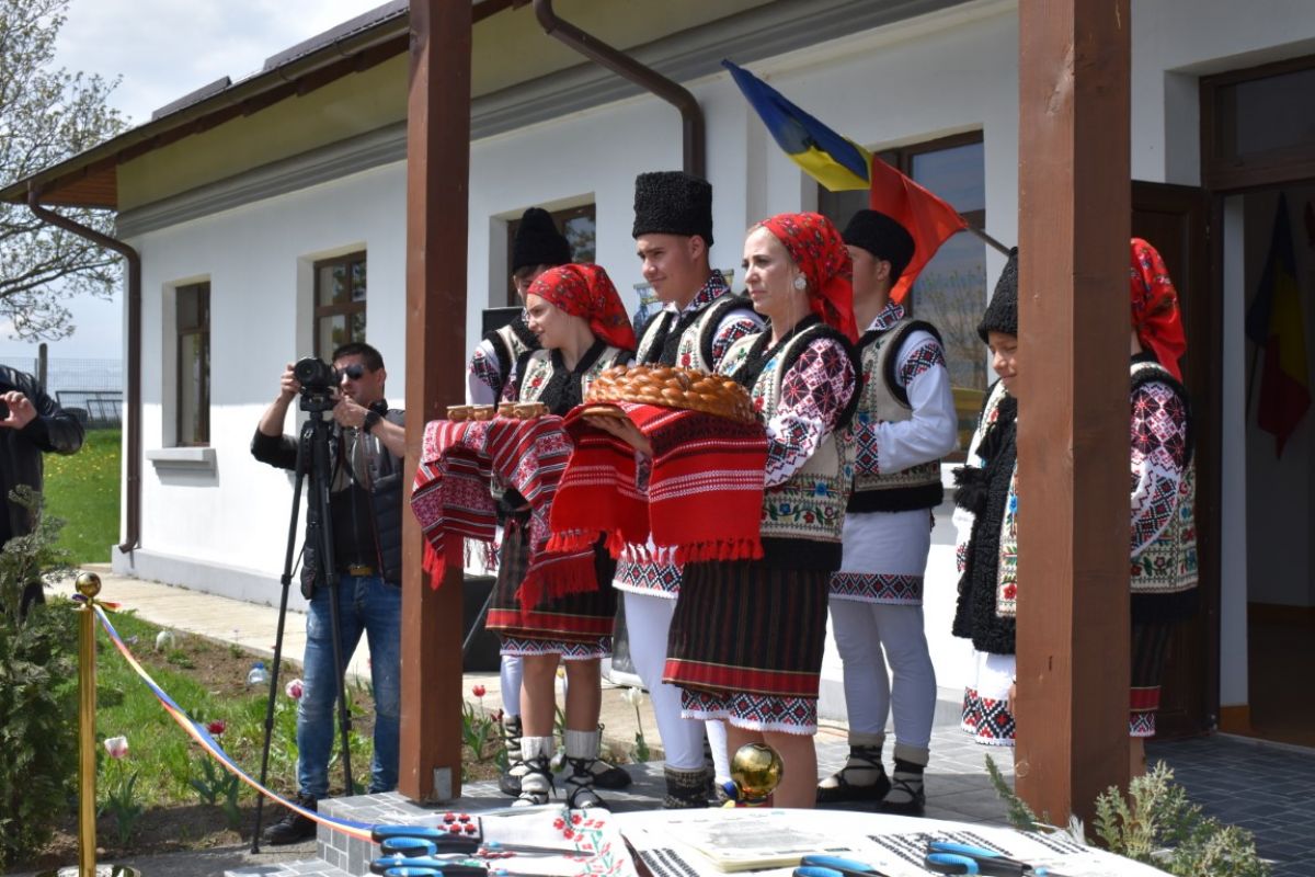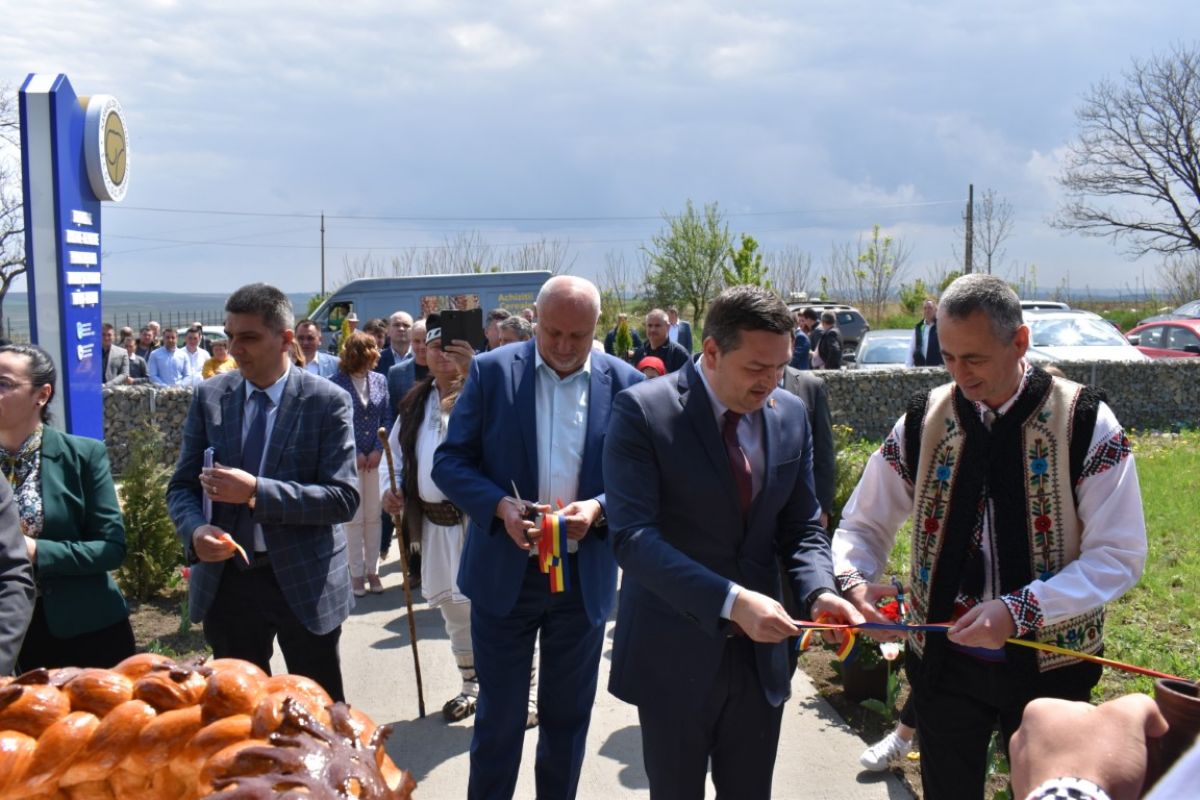 Înainte de a se intra, oficialii au fost invitați să taie panglica inaugurală și au fost omeniți cu colac și țuică.