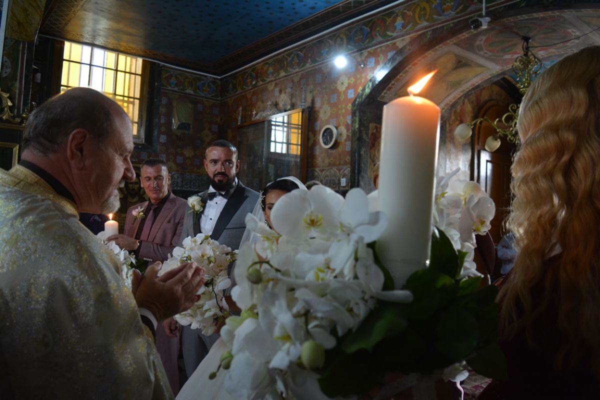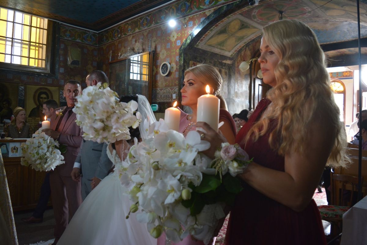 Francisca Dulceanu și Bogdan Lățescu, tinerii care sâmbătă s-au căsătorit religios la Biserica Sfinții Voievozi din Botoșani, au fost însoțiți la altar de două perechi de nași.