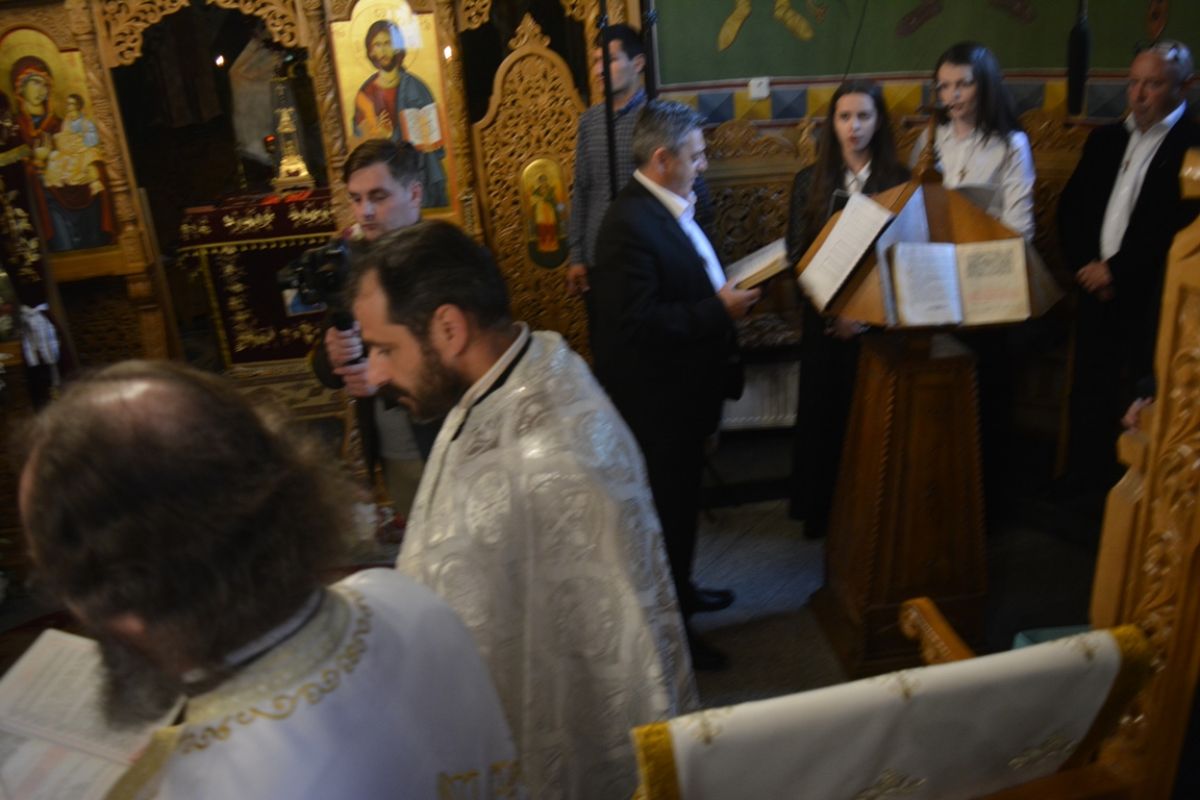 Slujba religioasă a avut loc la 15:30 și a fost oficiată de părintele stareț Gheorghiță de la Mănăstirea Sihăstria Voronei și de preotul Cristian Ștefan, fiul primarului comunei. Nu au lipsit câteva măicuțe și o parte a corului Bisericii Sfânta Cuvioasa Parascheva din Botoșani condus de profesorul Laurențiu Palade.