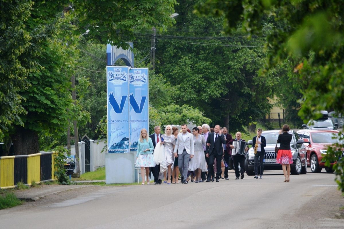 O mulțime de săteni au ieșit pe la porțile caselor sau au venit chiar la biserică pentru a vedea mirele și mireasa, unii dintre ei ținând neapărat să filmeze o parte a evenimentului de familie.