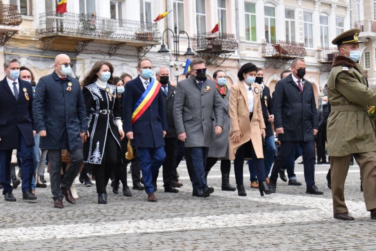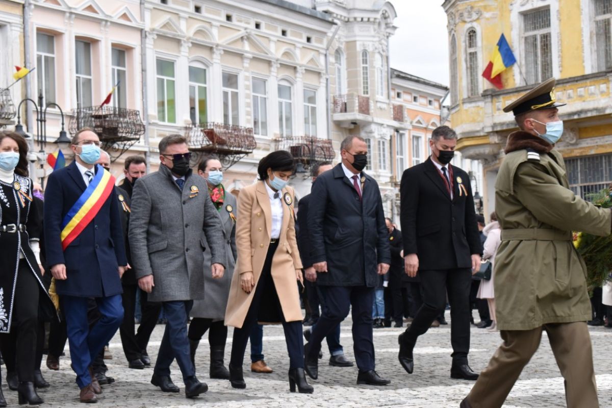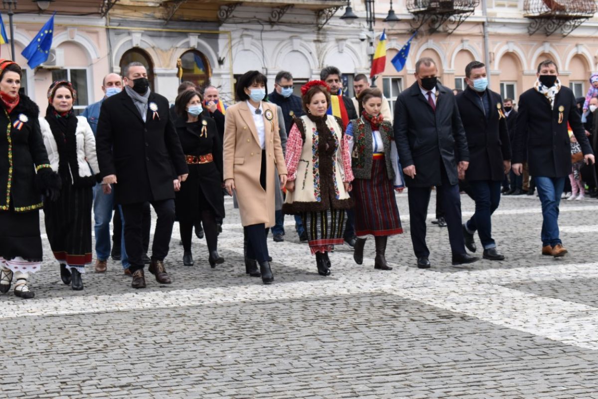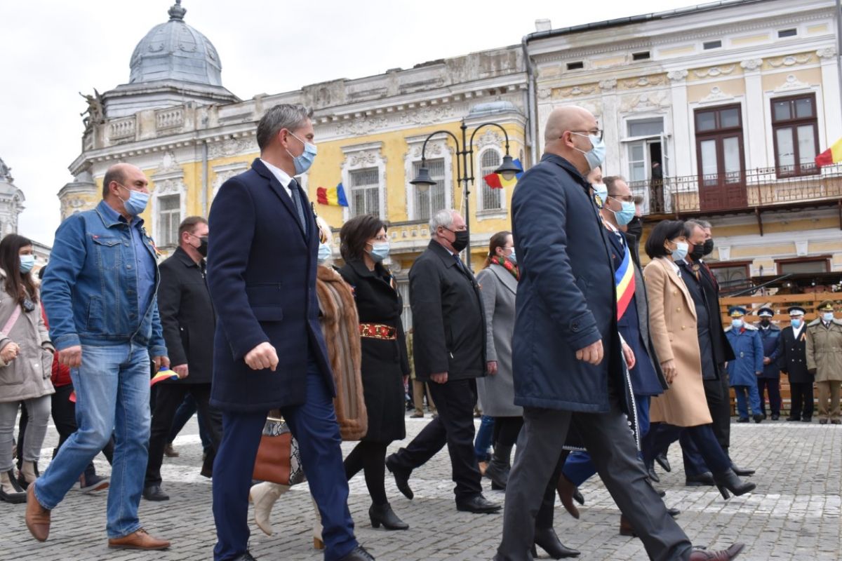 Mihaela Huncă a venit însoțită de viceprimarul Liviu Toma și Doru Gravrilaș, consilier județean, Pro România fiind următoarea formațiune care s-a înscris la depunerea de jerbe de flori.