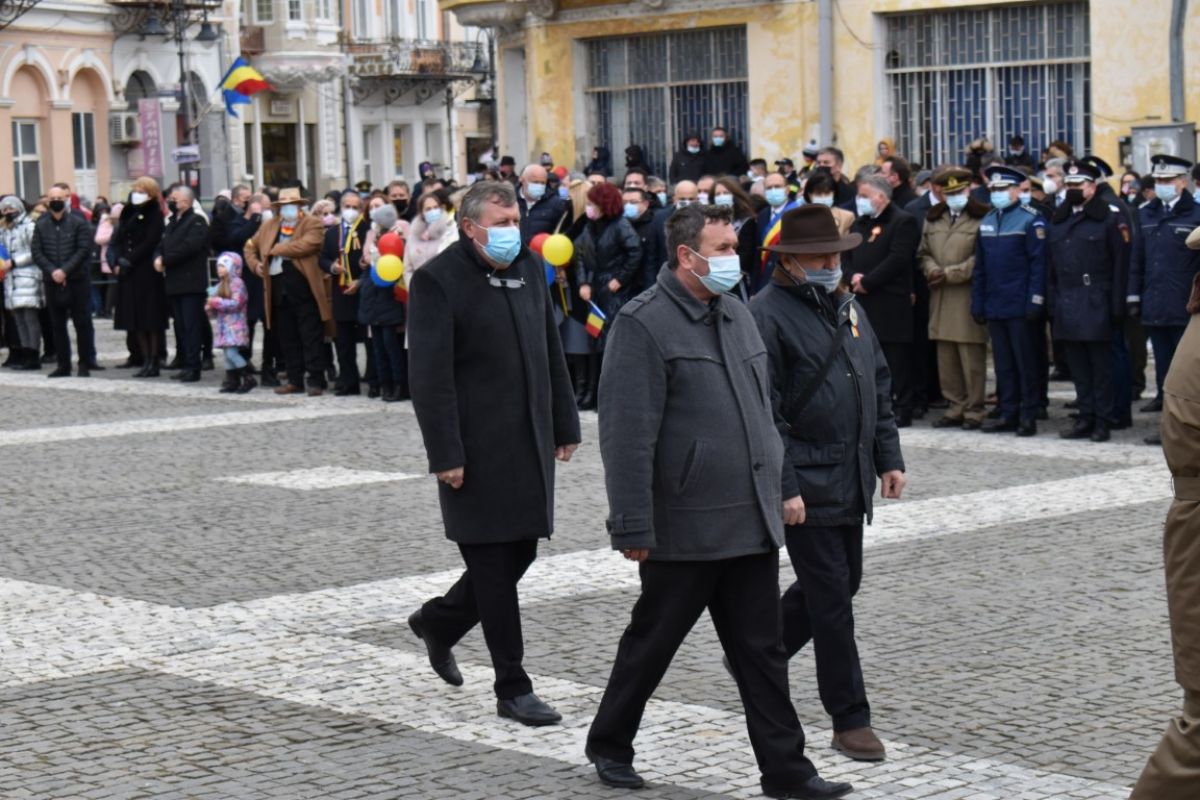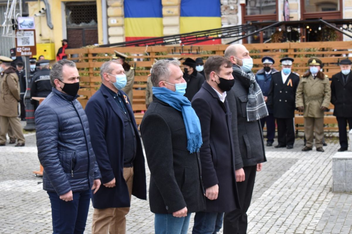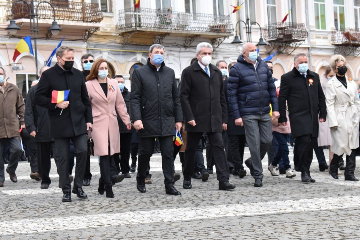 Cu Costel Șoptică în mijloc, flancat de colegul parlamentar Cristian Achiței și colegul prefect, Dan Nechifor, peneliștii au fost vizibili din punct de vedere numeric, fiind înșirați pe mai multe rânduri la depunerea propriei coroane.