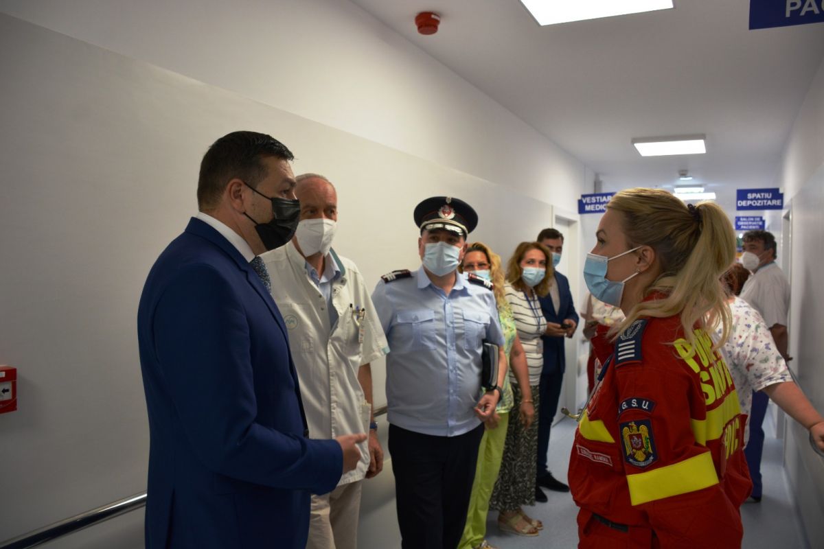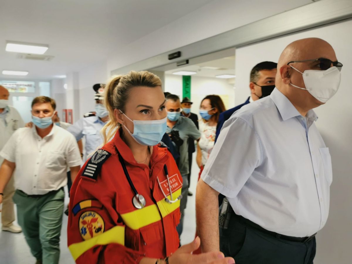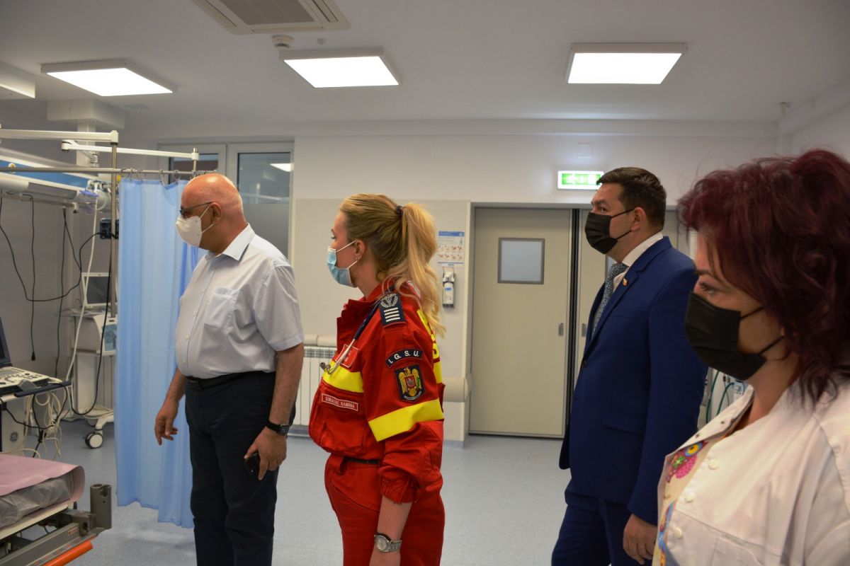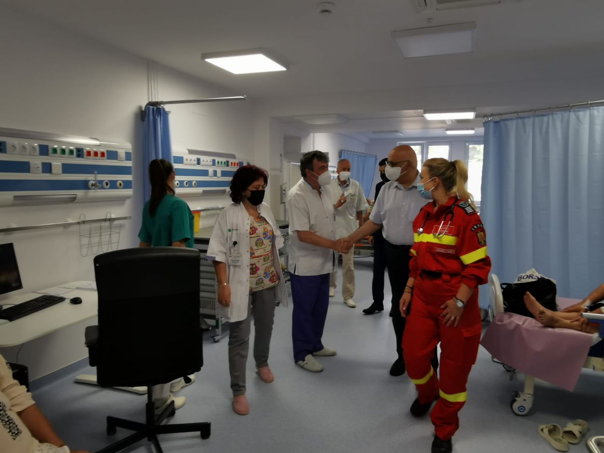 În primă fază s-a întreținut cu prefectul Sorin Cornilă și șeful ISU, Decebal Murariu, după care împreună s-au deplasat la Unitatea de Primiri Urgențe (UPU) a Spitalului Județean Mavromati.