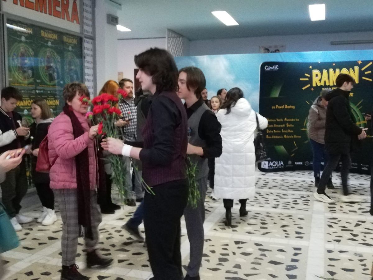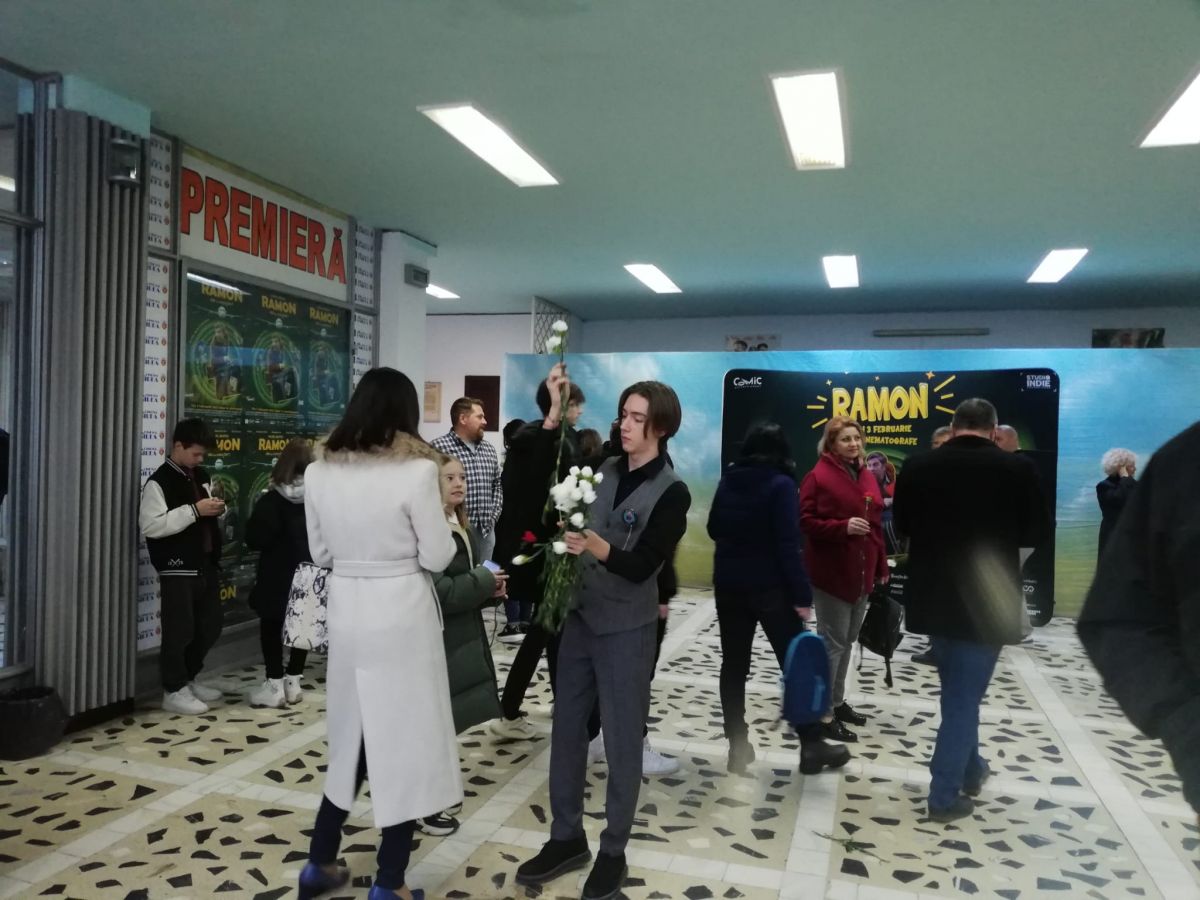 Iar covorul roșu nu a fost singurul ingredient pe care Viorel Hrițcu l-a oferit invitaților și botoșănenilor veniți la filmul ”Ramon”. La intrarea în cinematograf, doamnele și domnișoarele au fost întâmpinate cu flori, tinerii din cadrul Atelierului de Teatru fiind cei cărora li s-a încredințat delicata misiune.