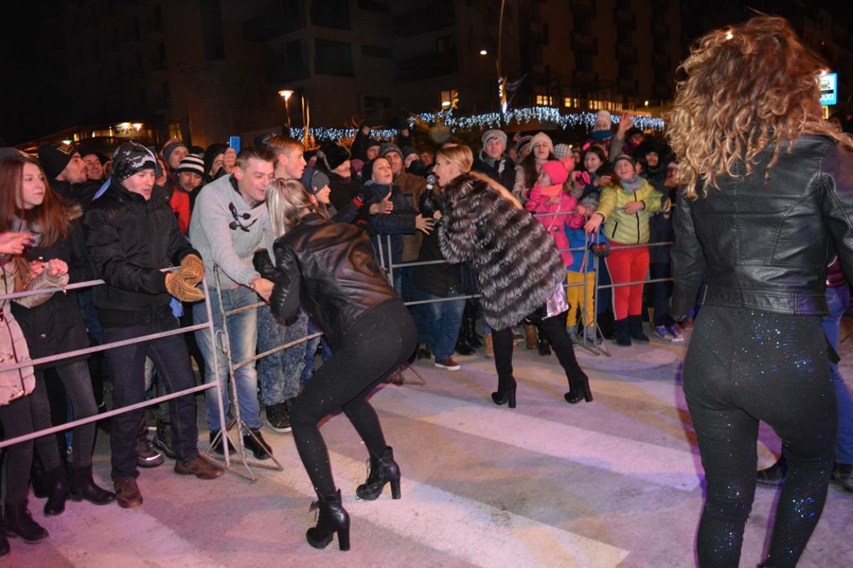 Constănțeanca a stat în fața publicului până cu câteva secunde înainte de miezul nopții, când a coborât supărată pe partenerul de viață fiindcă n-a lăsat-o să facă ea intrarea în 2016. A făcut-o însă prezentatorul spectacolului, care a numărat ultimele secunde ce au adus și un superb foc de artificii. La acesta au asistat, printre alții, primarul Ovidiu Portariuc, viceprimarul Cosmin Andrei și prefectul Costică Macaleți.
